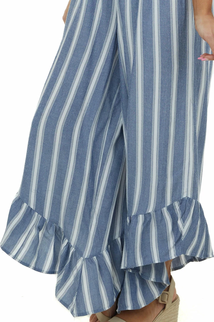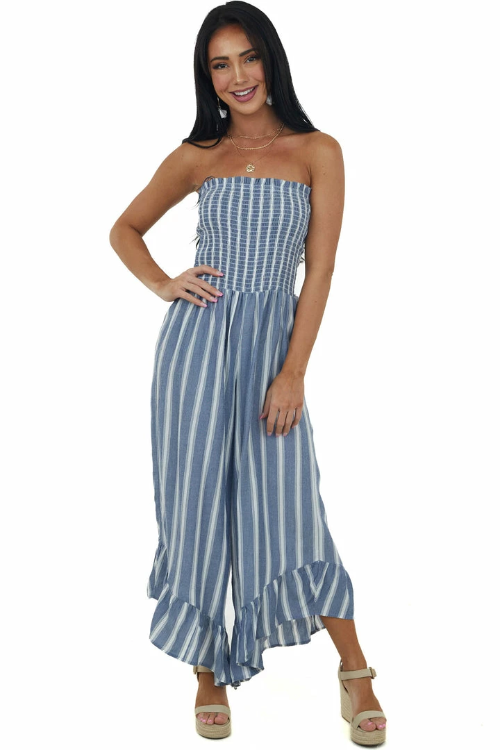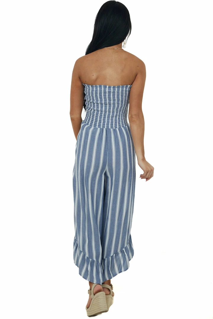 - Cornflower Striped Strapless Smocked Jumpsuit