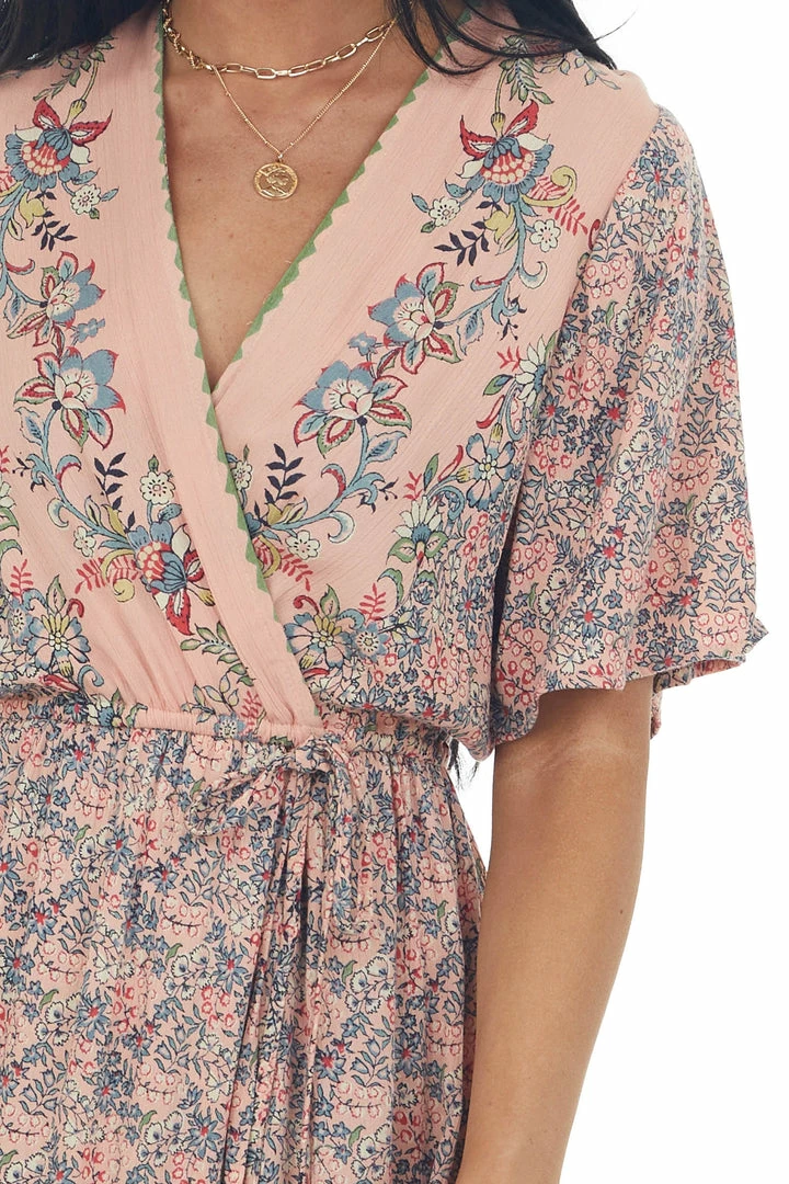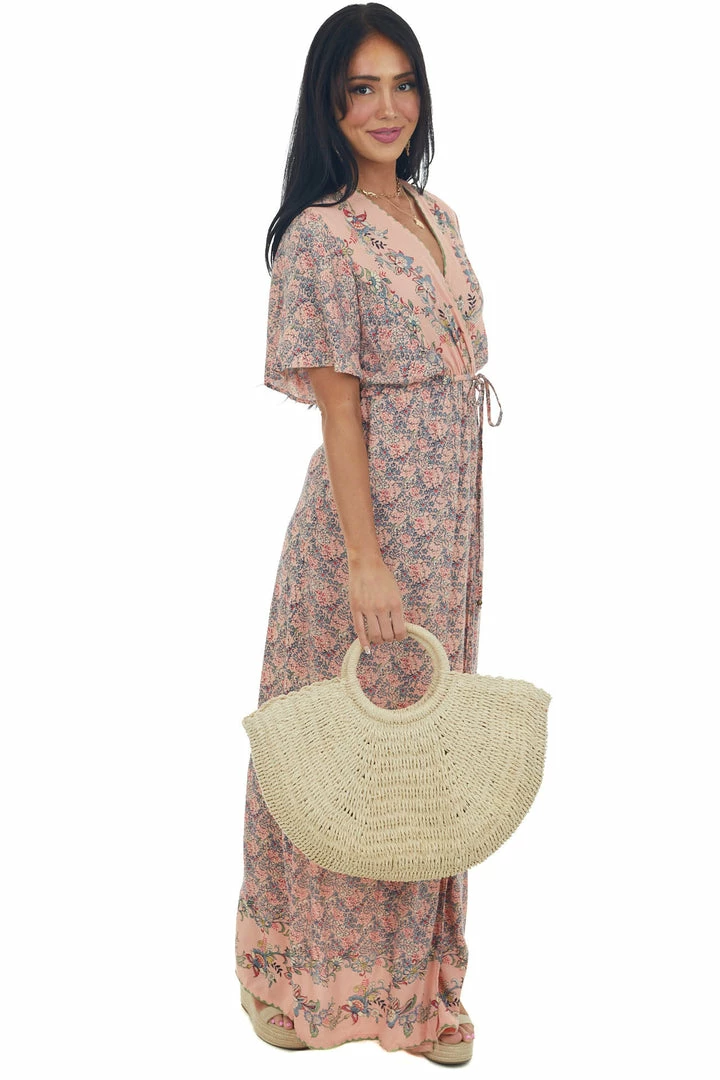 - Deep Cherry Blossom Floral Surplice Maxi Dress