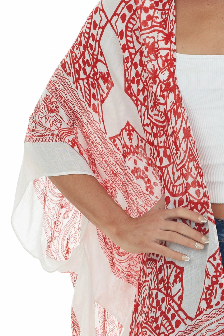 - Lipstick Red Mandala Printed Kimono with Tassels