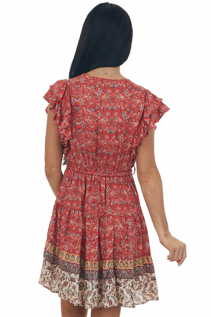 - Lipstick Printed Surplice Tassel Tie Mini Dress
