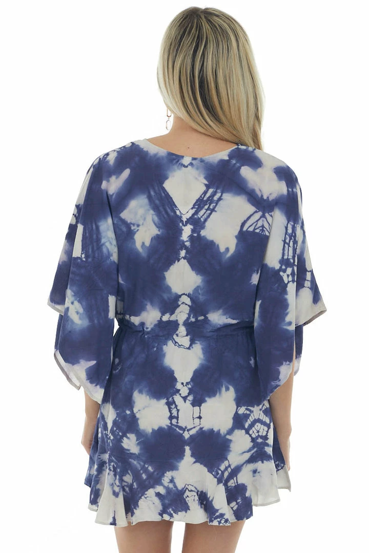 - Navy Tie Dye Kimono Sleeve V Neck Woven Dress