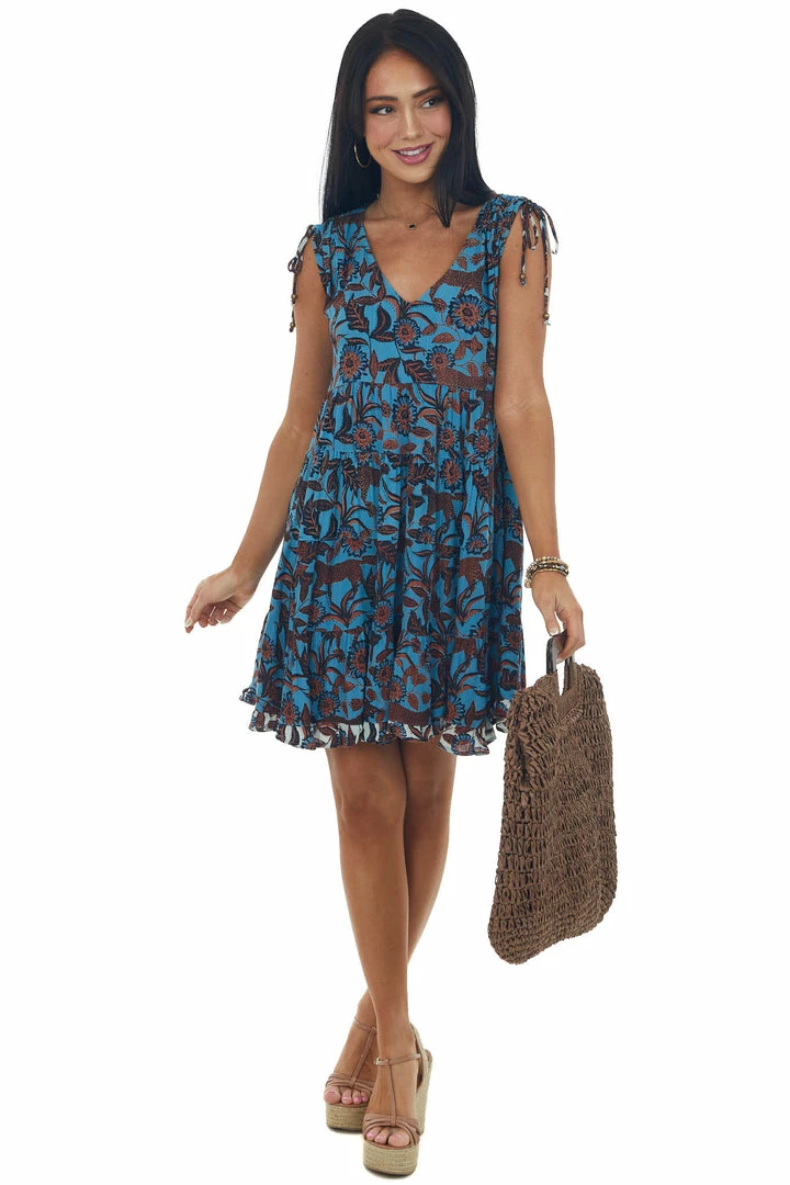 - Ocean and Spice Floral Tie Strap Babydoll Dress