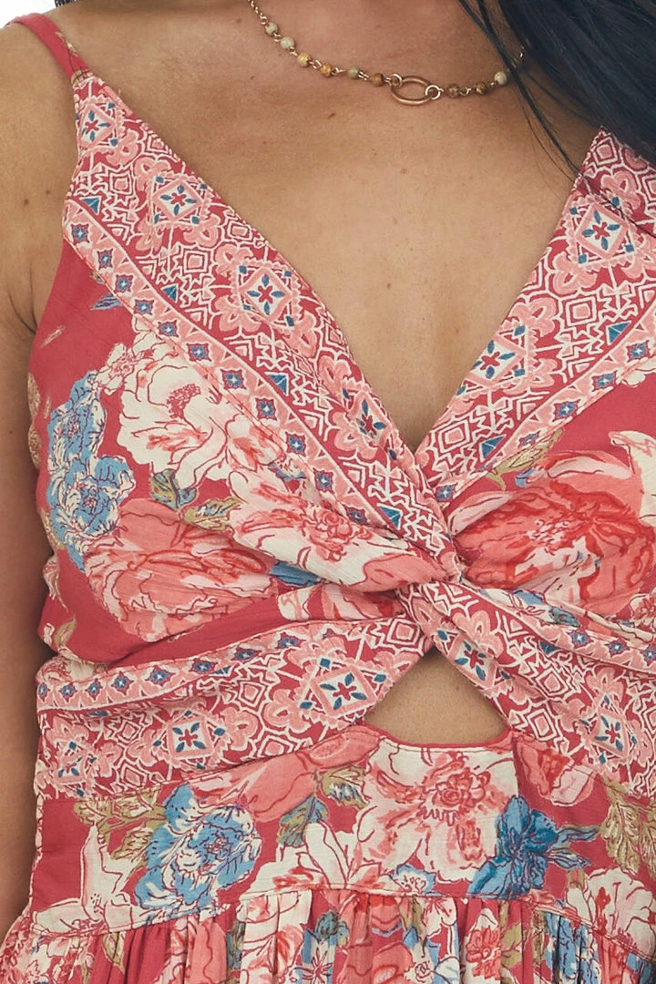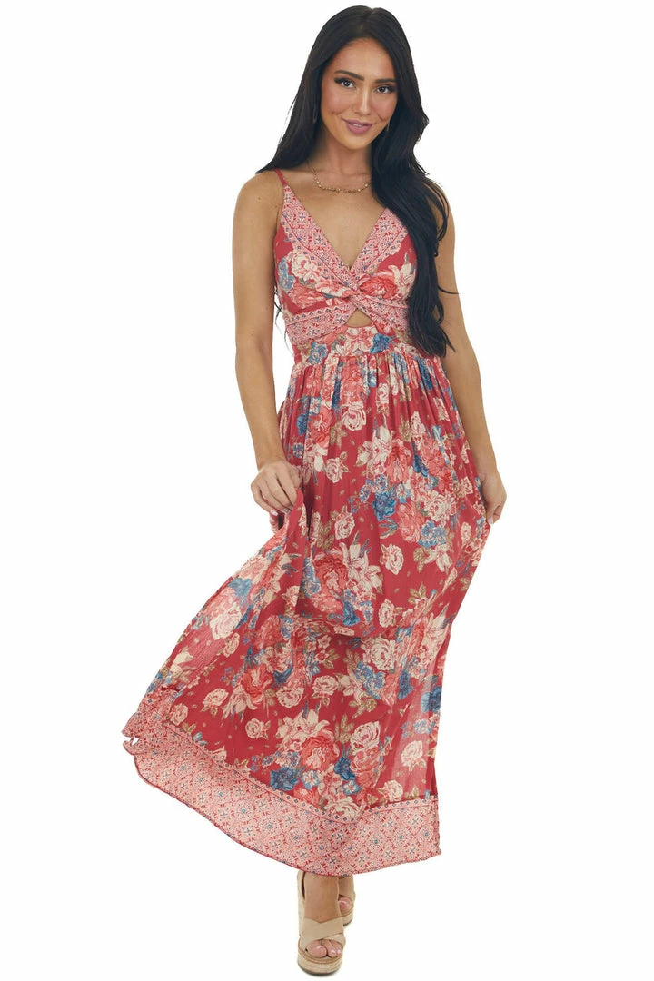 - Raspberry Floral Print Sleeveless Maxi Dress