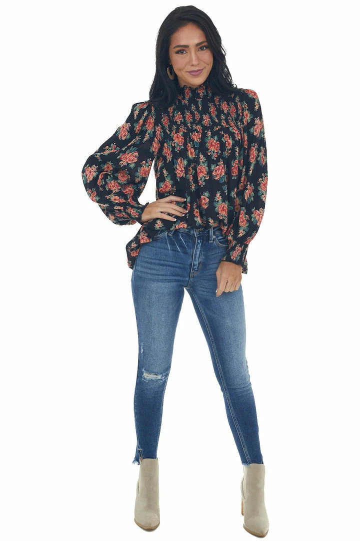 - Floral print in shades of Juniper, Watermelon, Mango, Peach and Sapphire