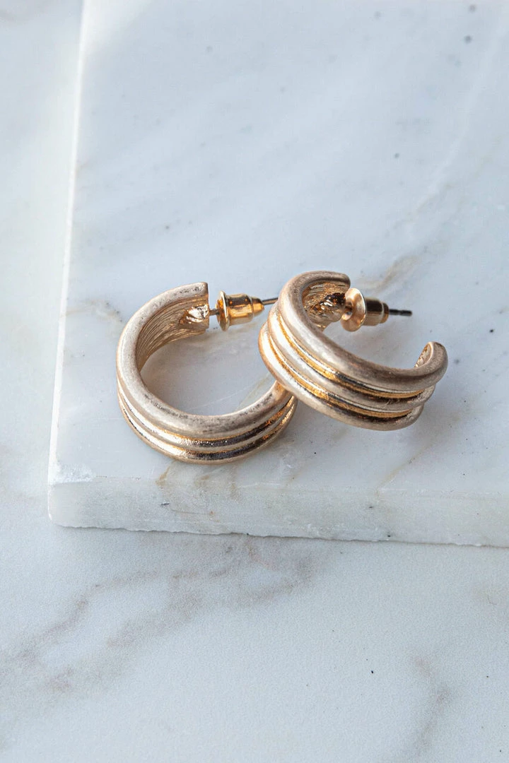 - Antique Gold Post Back Open Hoop Earrings