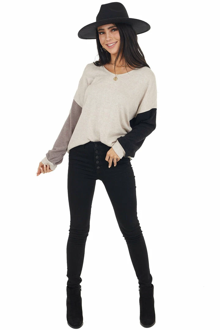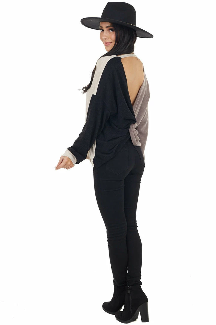 - Blush Black and Taupe Colorblock Top with Back Twist Detail