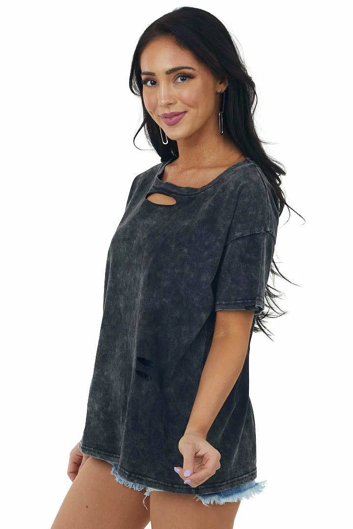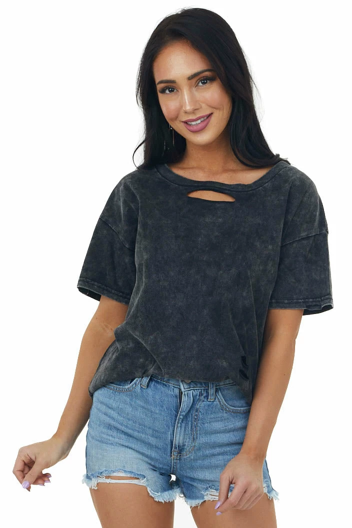 - Charcoal Mineral Wash Cut Out Short Sleeve Tee