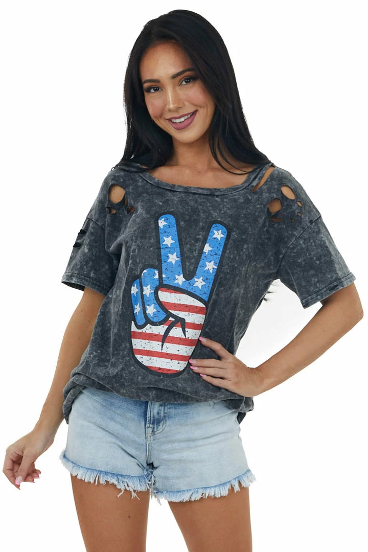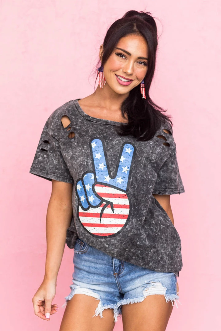 - Charcoal Washed Americana Peace Sign Graphic Top