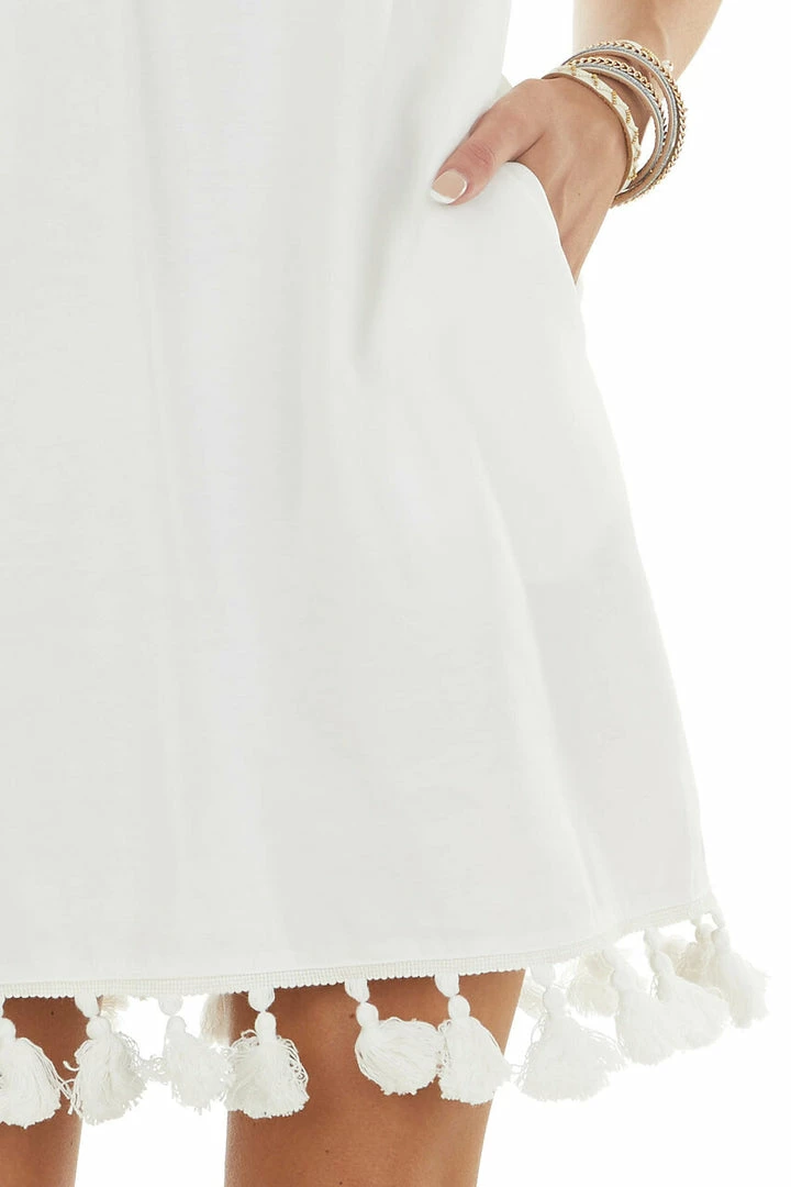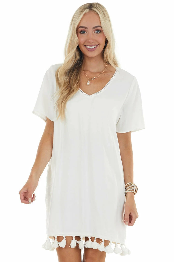 - Off White V Neck Mini Dress with Short Sleeves