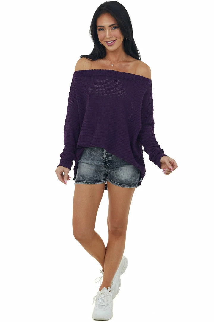 - Grape Off Shoulder Long Sleeve Waffle Top
