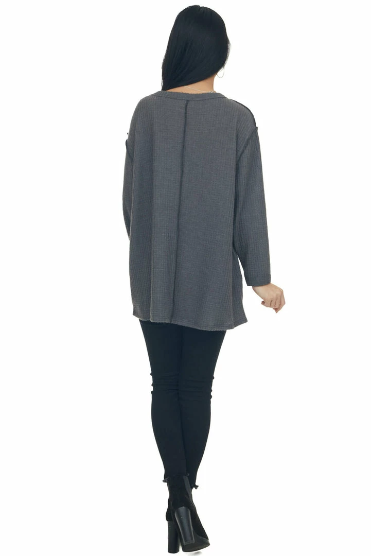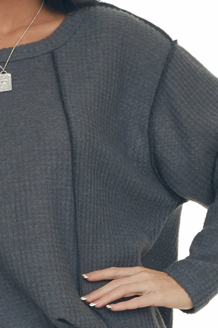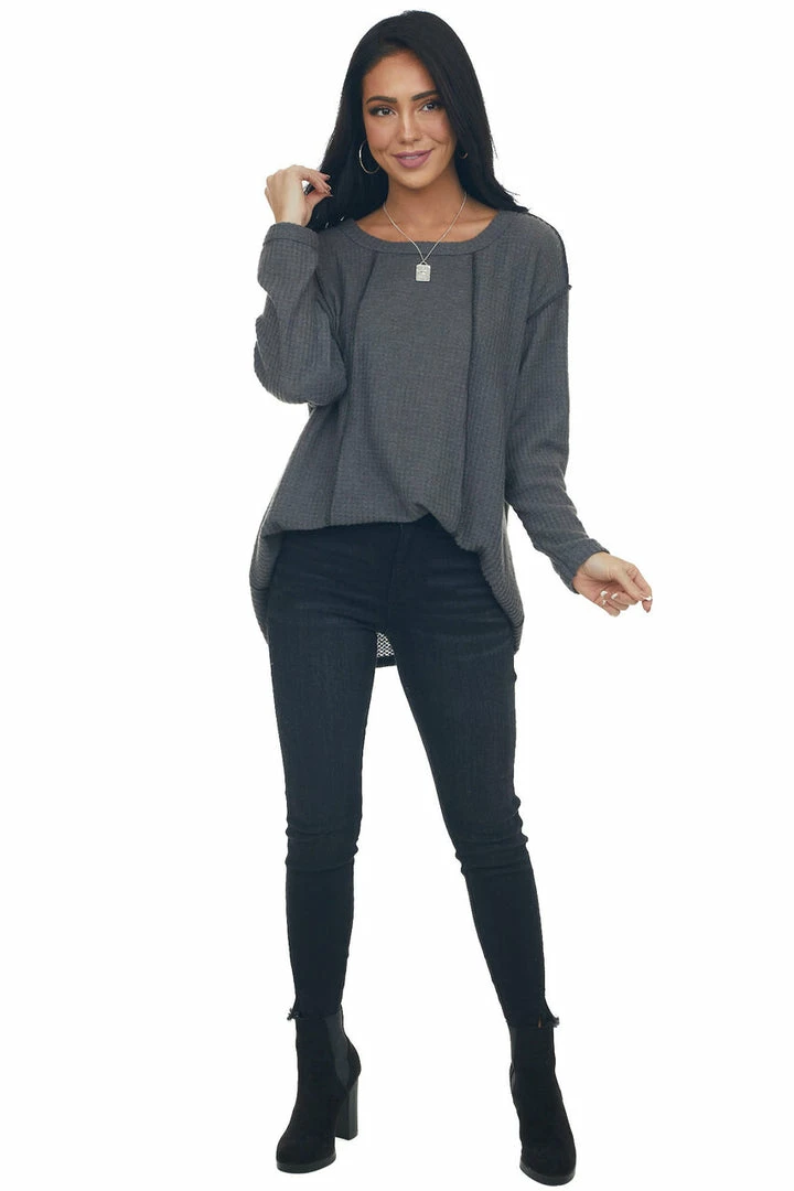 - Graphite Long Sleeve Brushed Waffle Knit Top