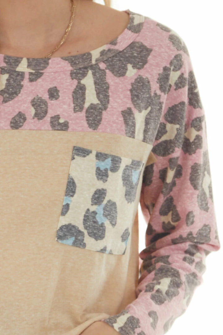 - Leopard in shades of Heathered Charcoal, Heathered Baby Blue, Heathered Carnation, and Heathered Desert Sand