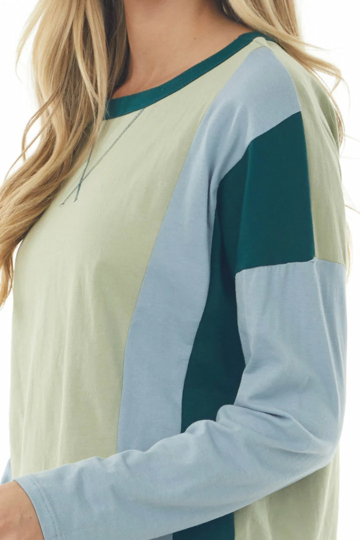 - Rich Pistachio Colorblock Long Sleeve Knit Top