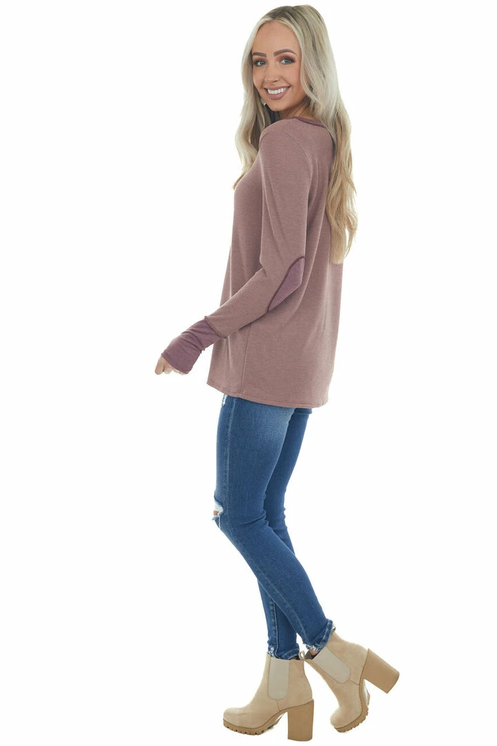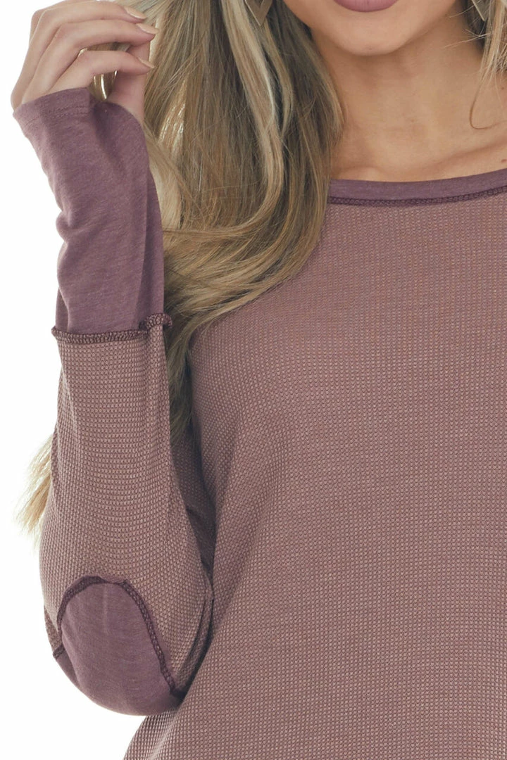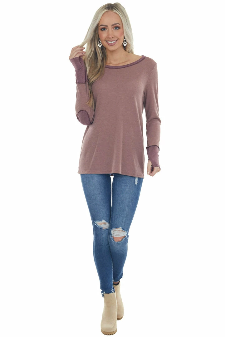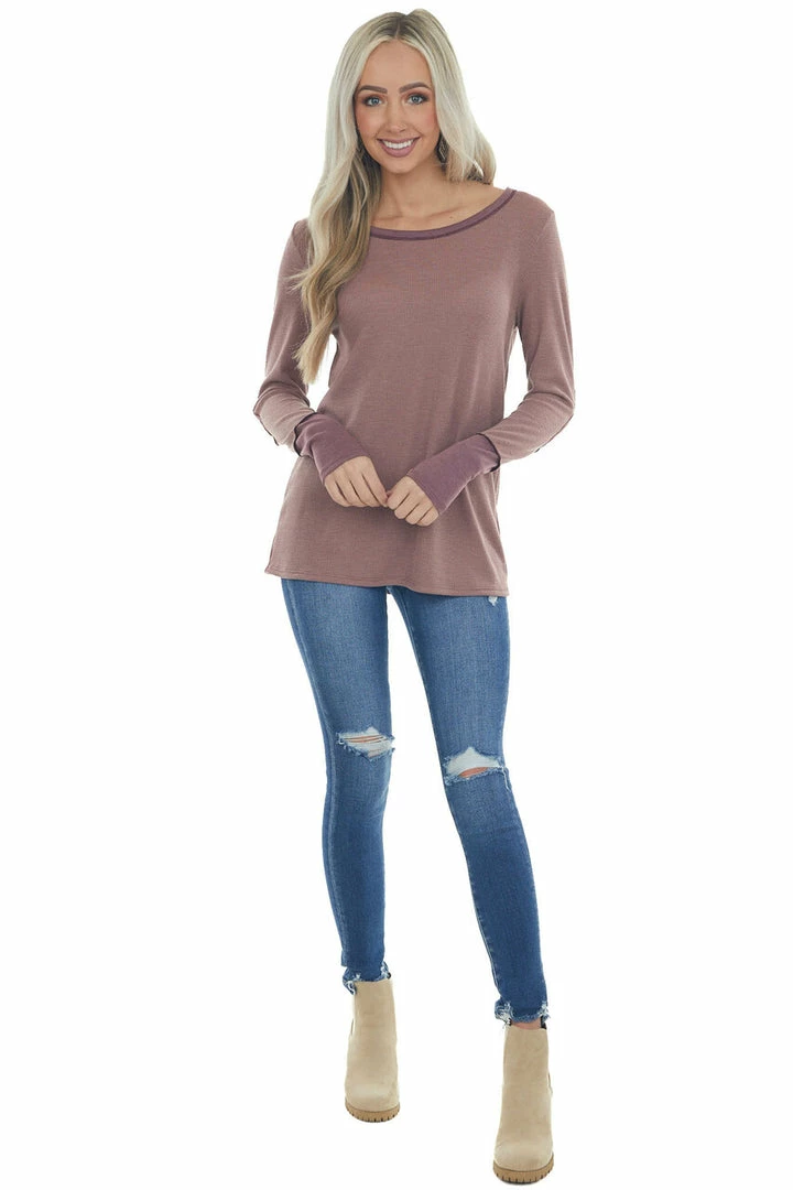- Rose Taupe and Berry Contrast Thermal Knit Top