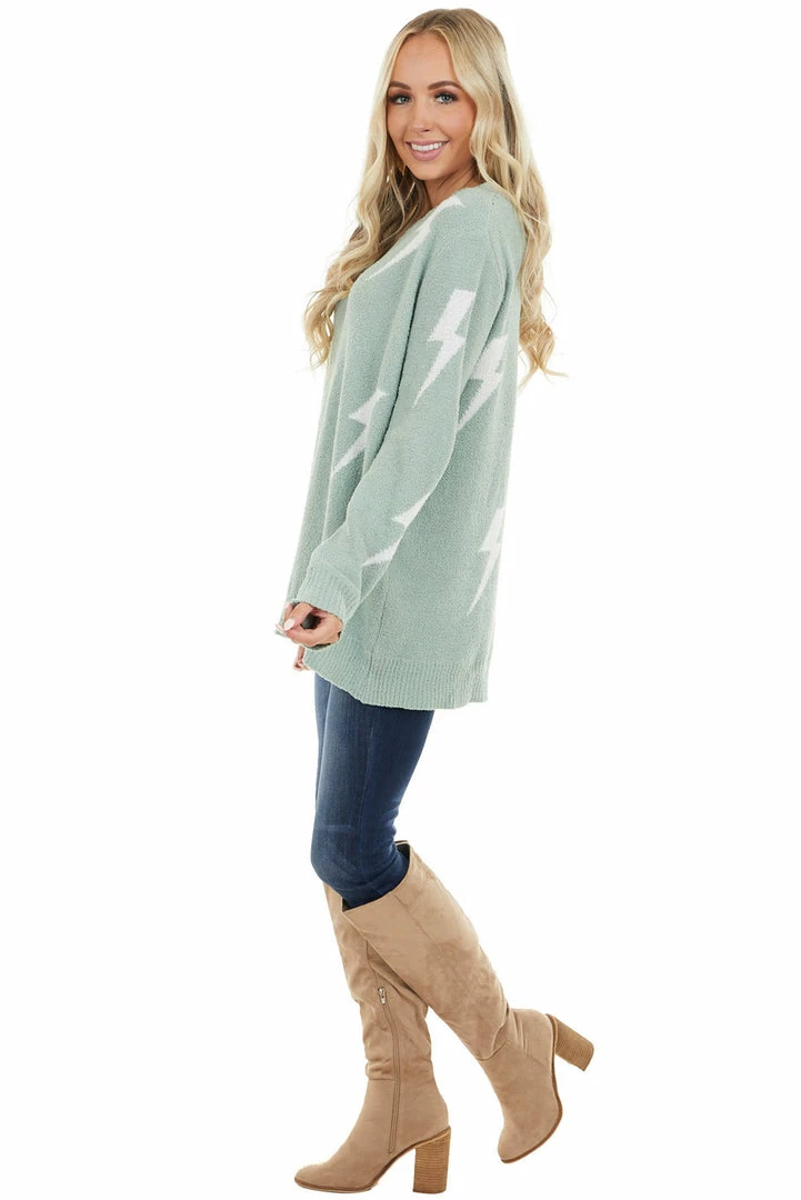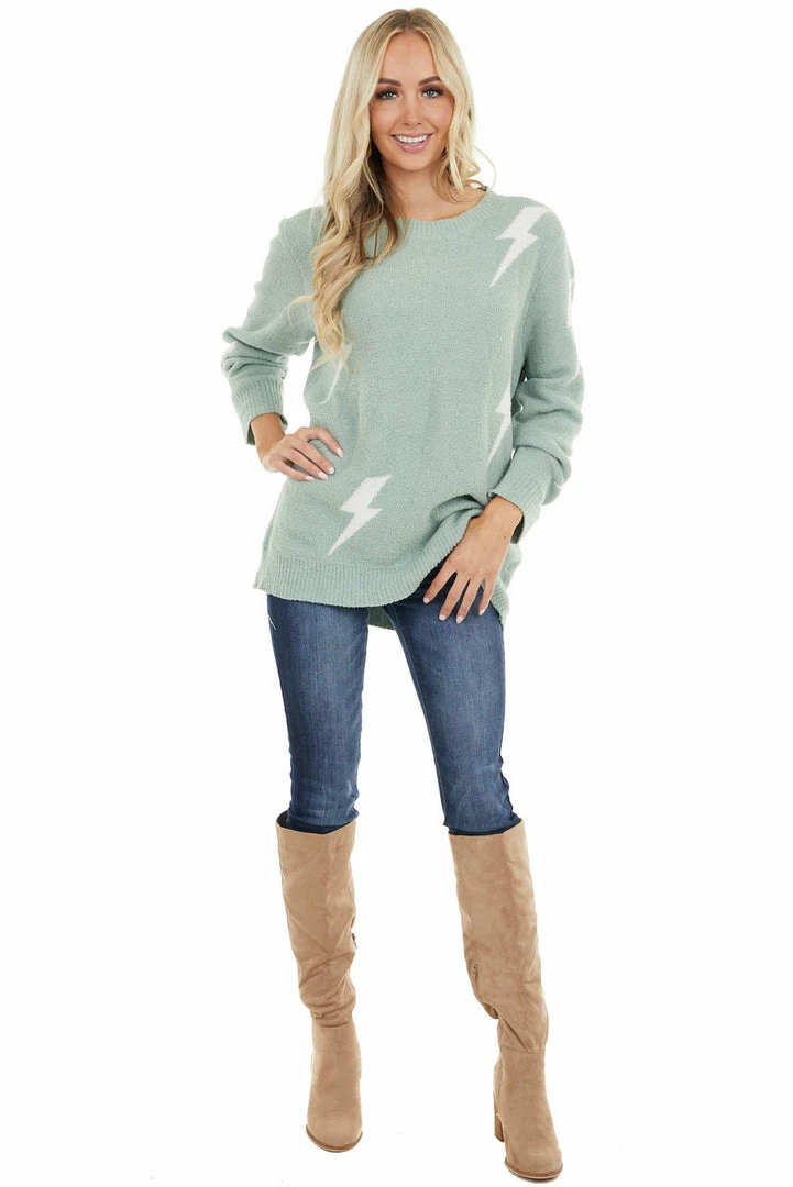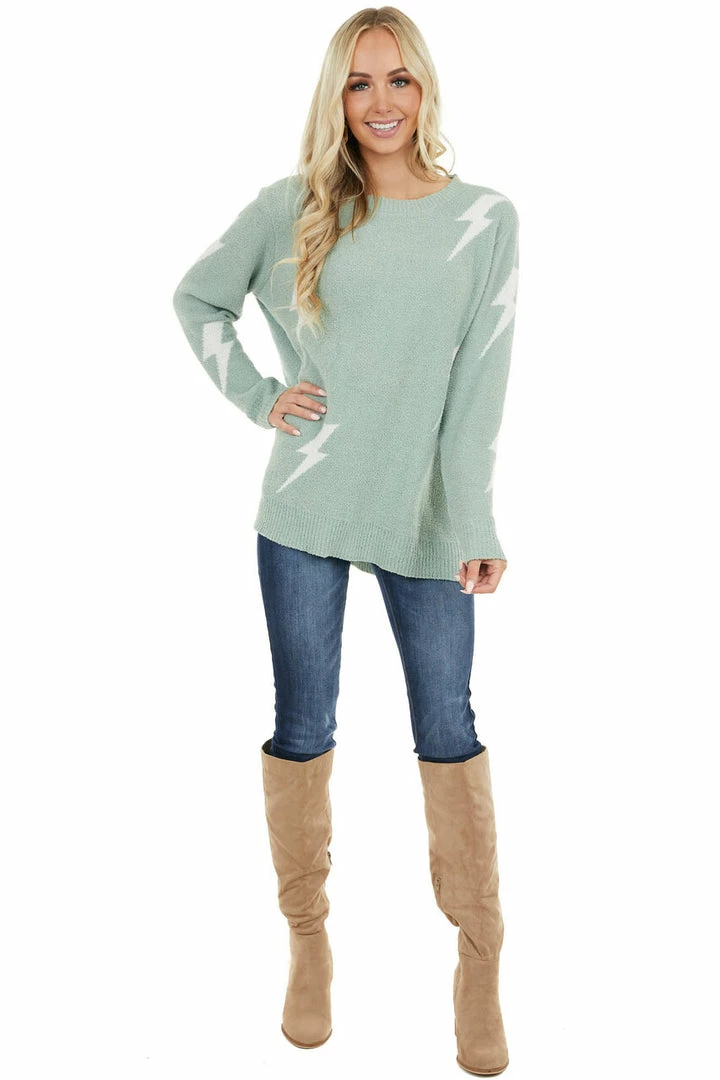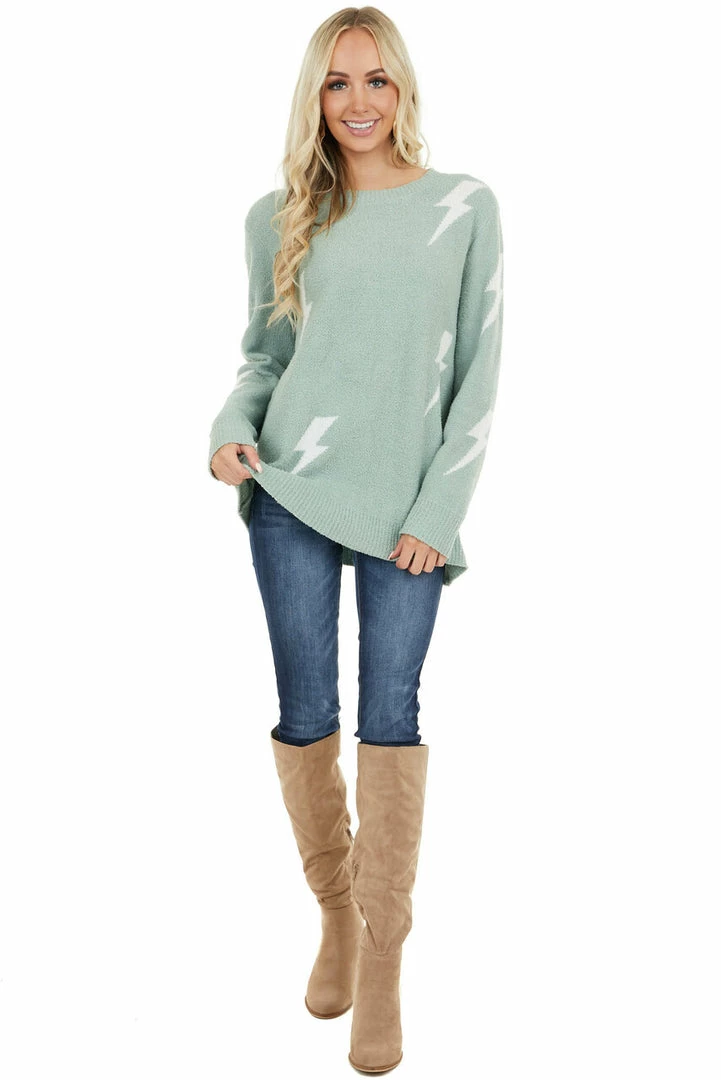 - Sage Super Soft Knit Sweater with Lightning Bolt Print