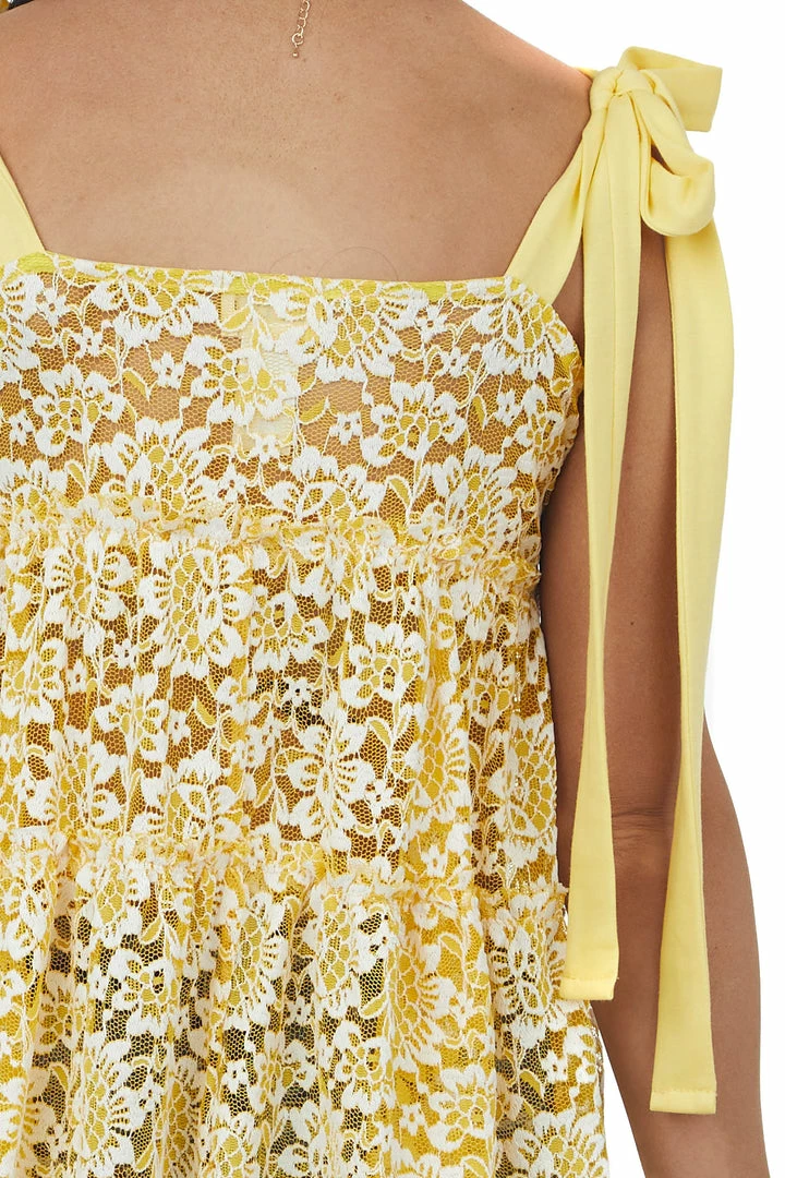 - Amber and Ivory Floral Lace Sheer Tank Top