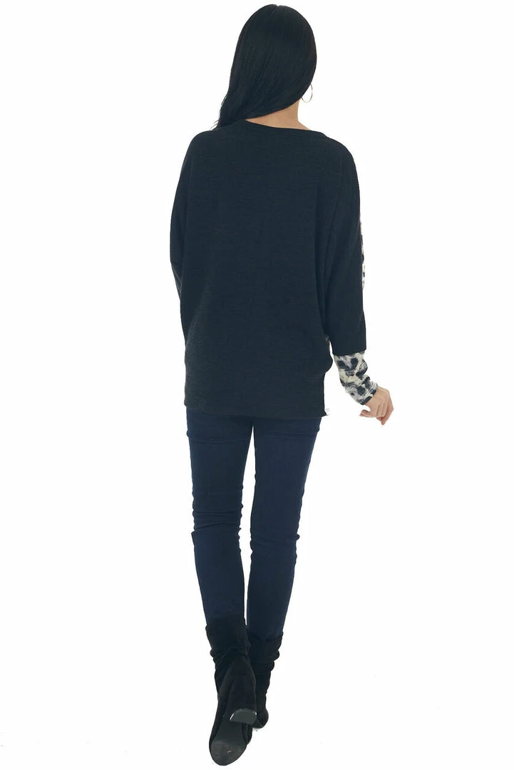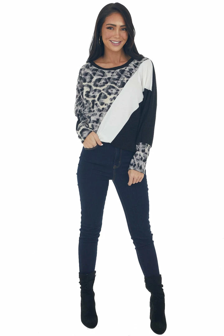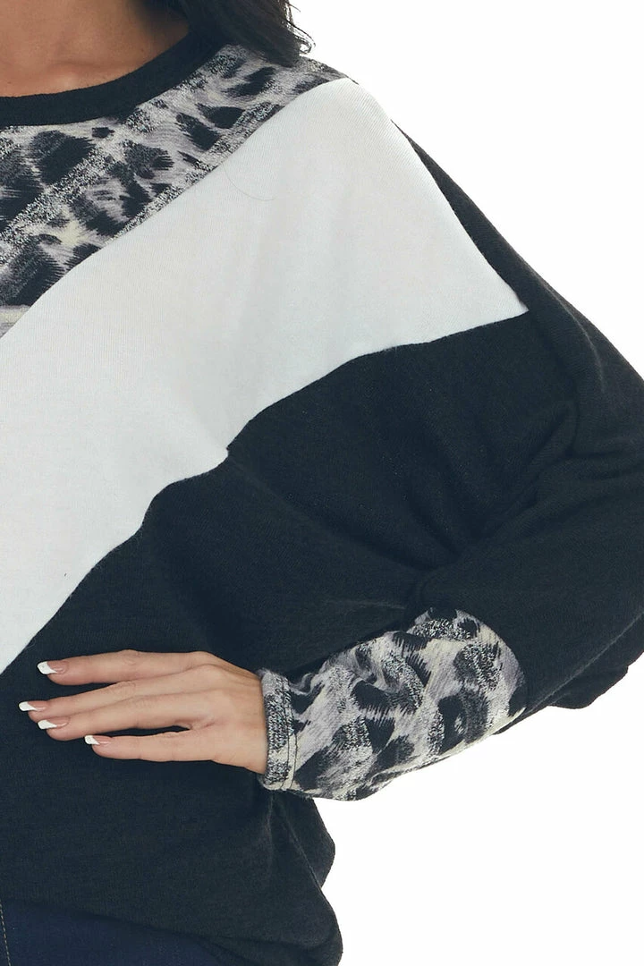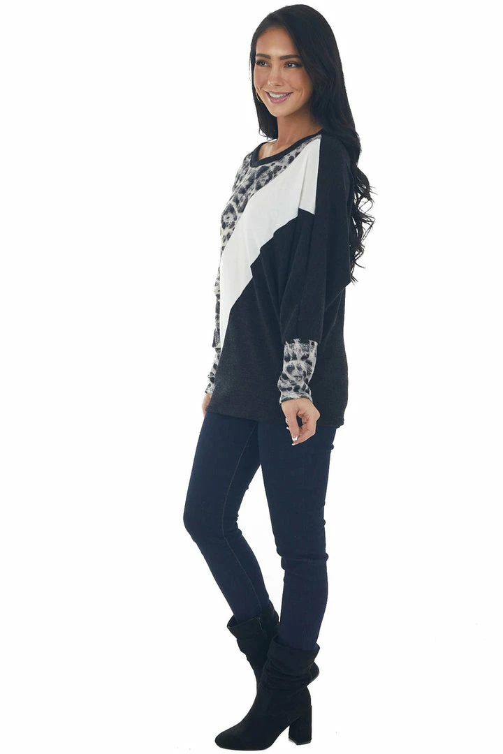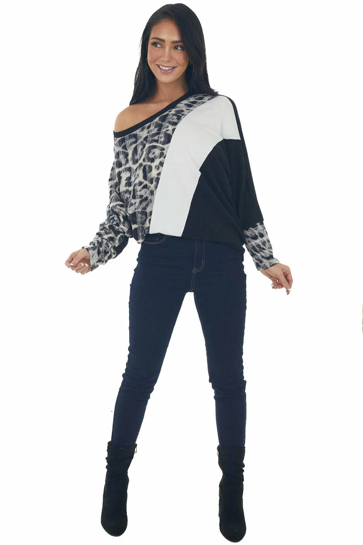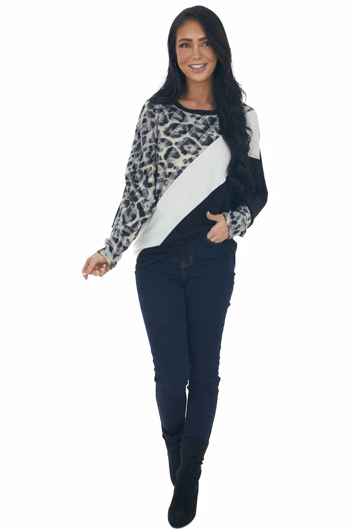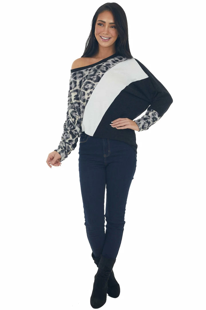 - Black Leopard Colorblock Long Dolman Sleeve Top