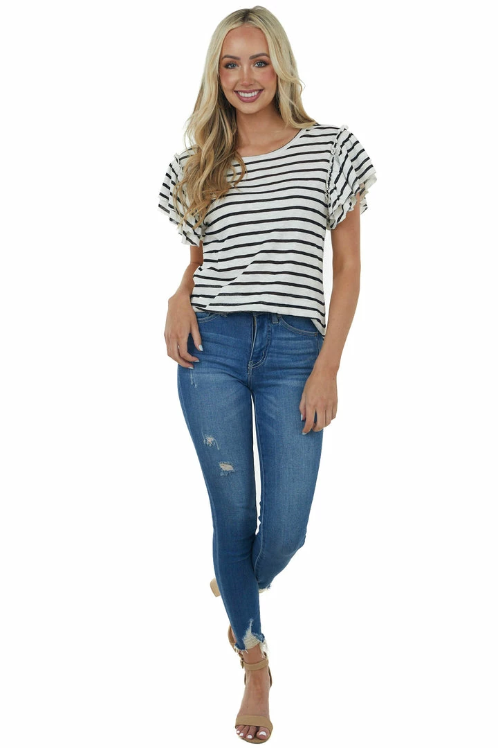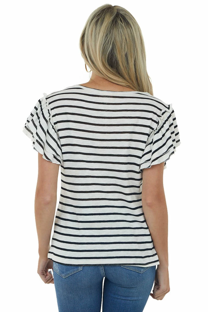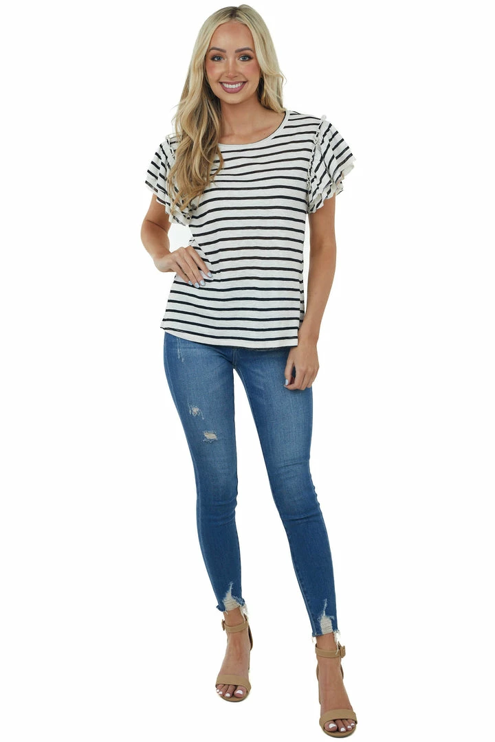 - Black Striped Tiered Ruffle Sleeve Knit Top