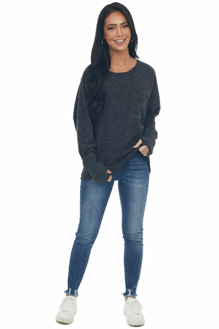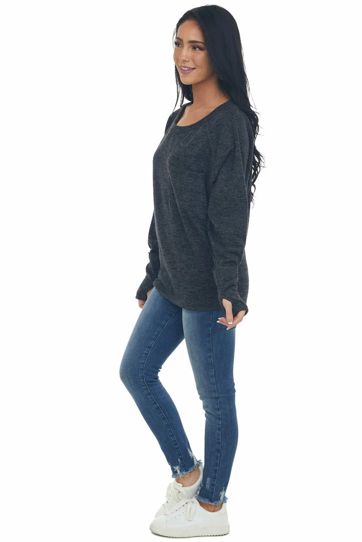 - Charcoal Dolman Sleeve Brushed Knit Top
