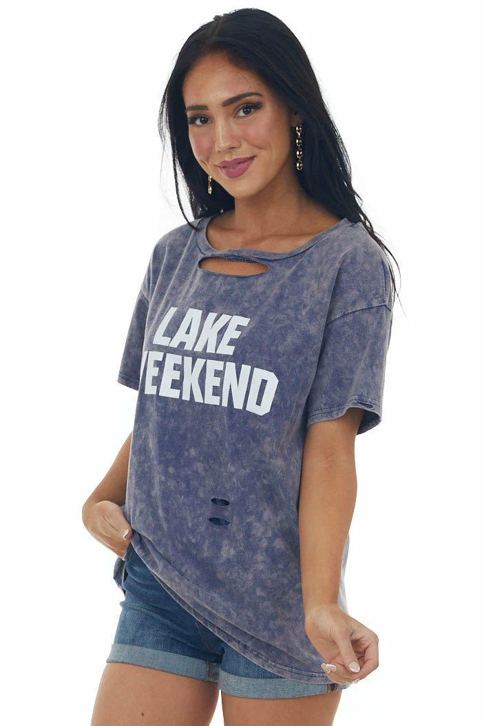 - Dark Dusty Blue Washed ‘Lake Weekend’ Knit Top