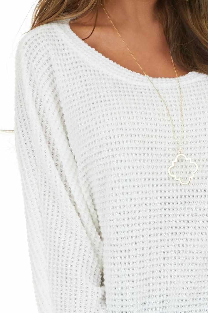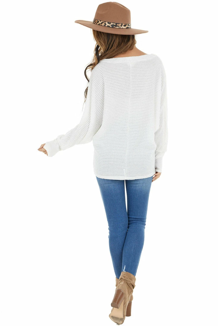 - Ivory Waffle Knit Dolman Sleeve Top with Long Banded Cuffs