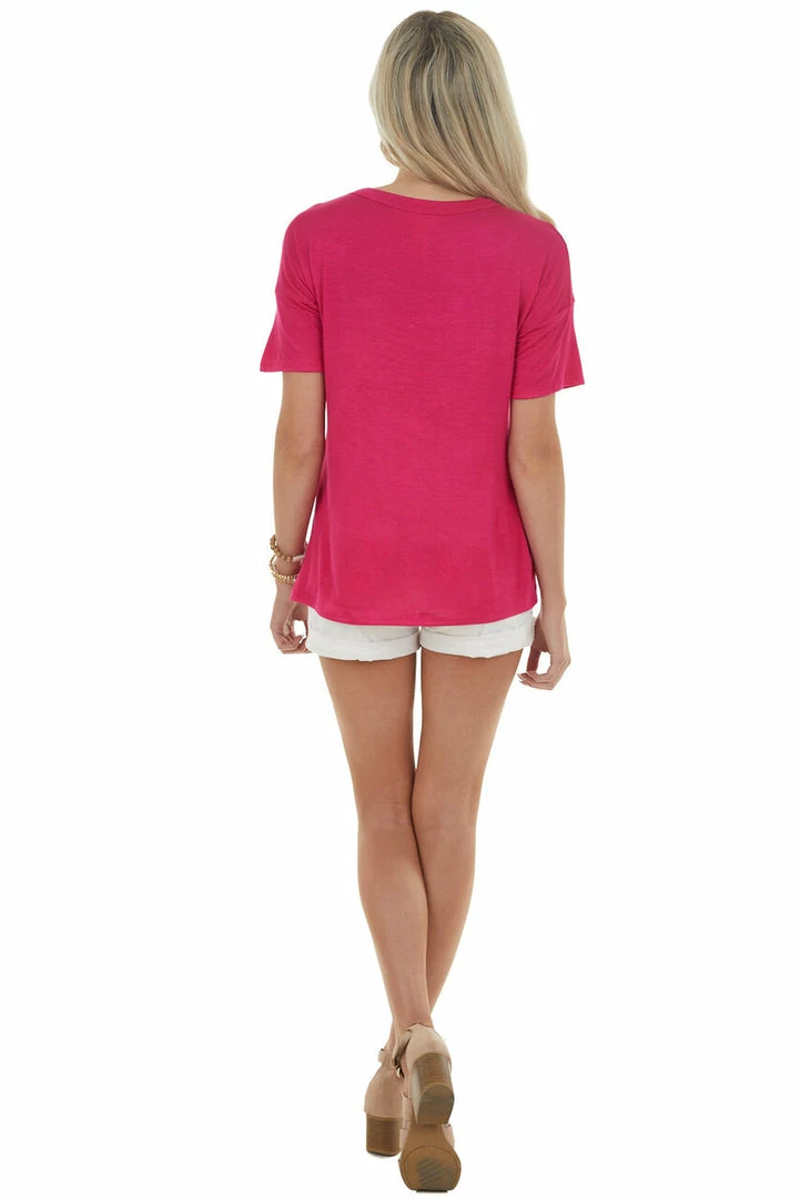 - Magenta Short Sleeve Knit Top with Caged Neckline