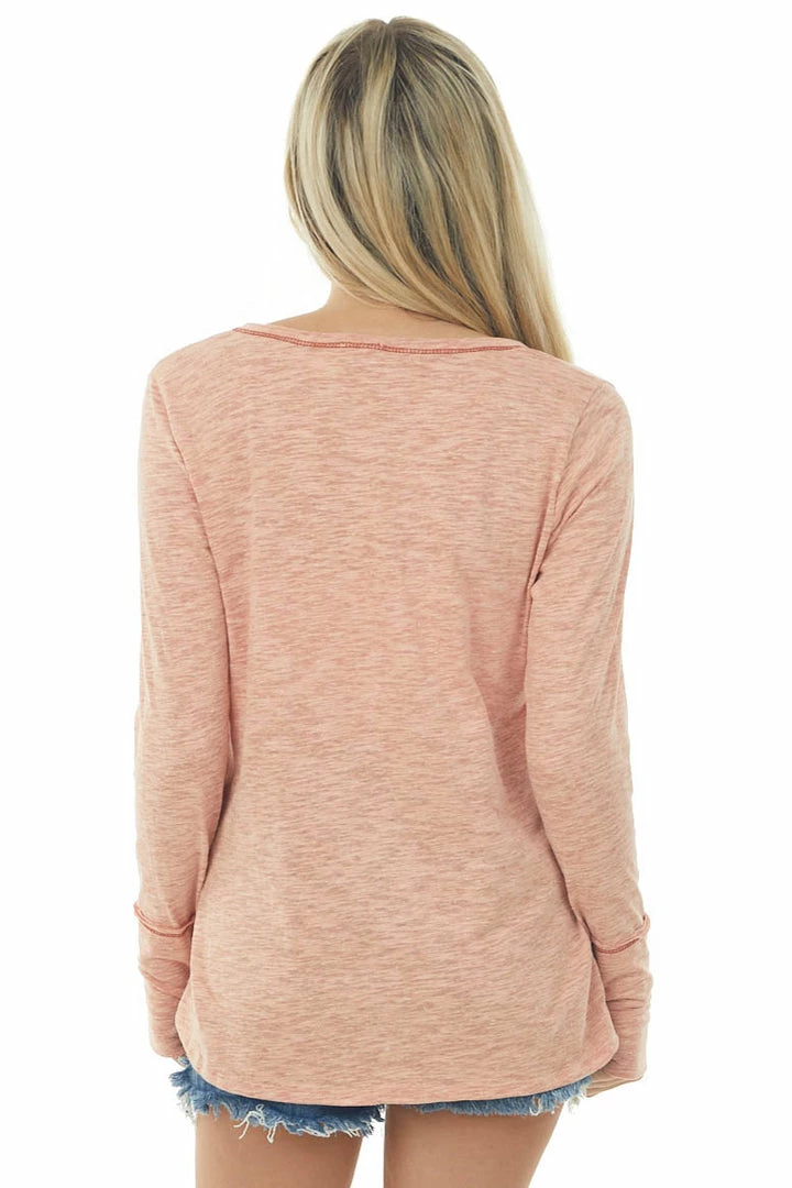 - Melange Coral Long Sleeve Thumb Hole Knit Top