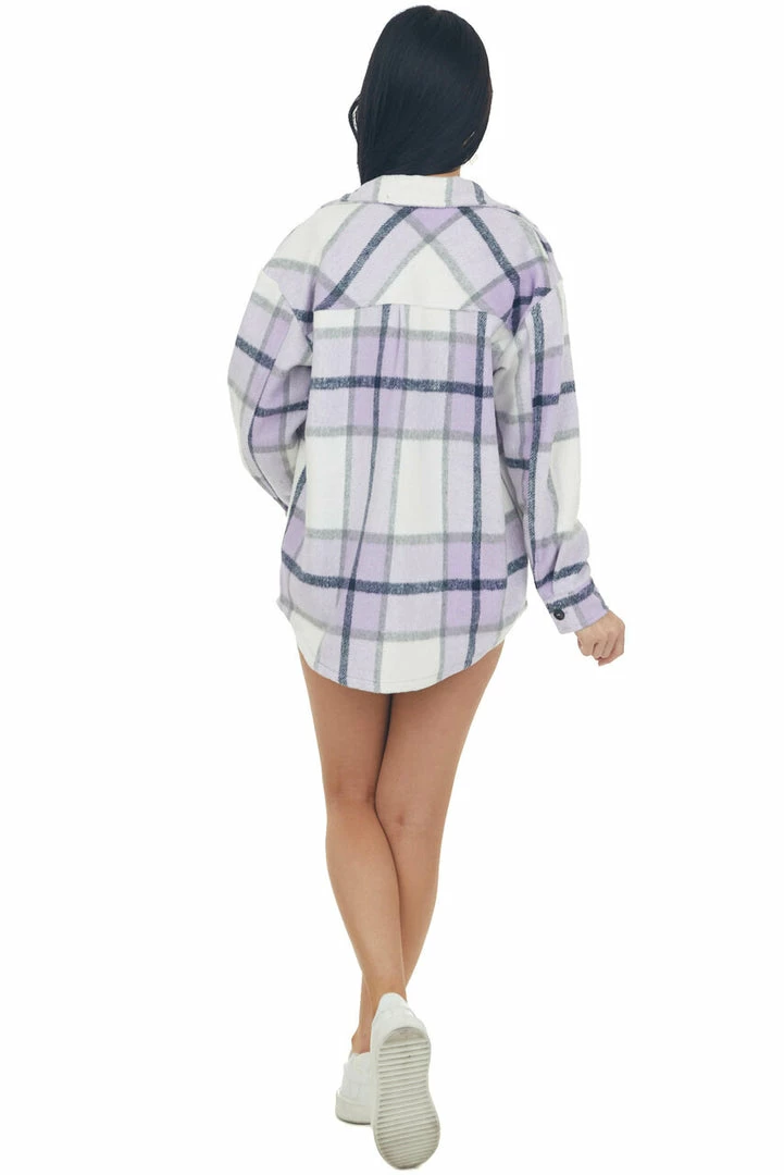 - Lavender Plaid Soft Shirt Jacket with Pockets