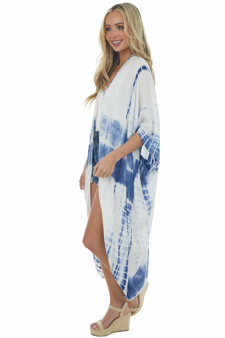 - Navy and Pearl Tie Dye Open Front 3/4 Sleeve Woven Kimono