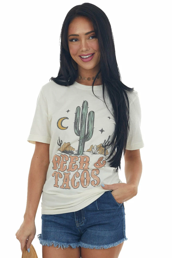 - White ‘Beer and Tacos’ Desert Graphic Tee