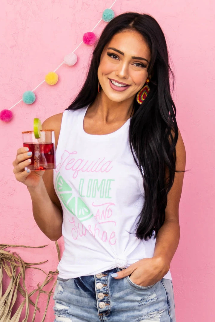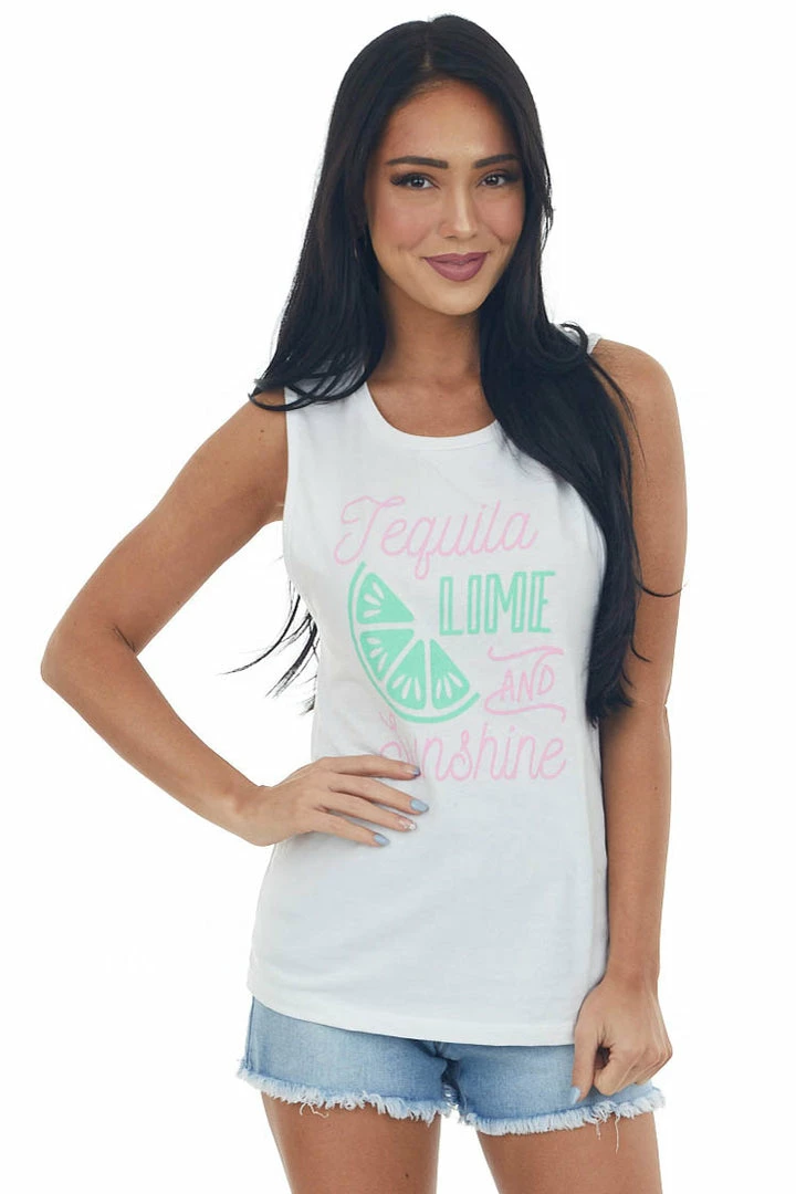 - White ‘Tequila Lime Sunshine’ Graphic Tank Top