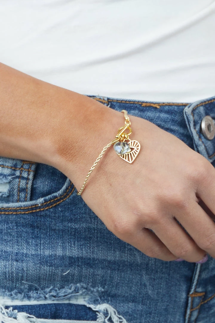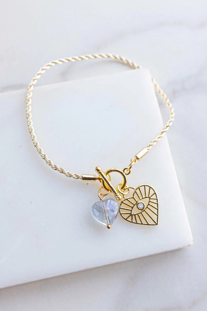 - Gold Heart and Eye Charm Toggle Bracelet