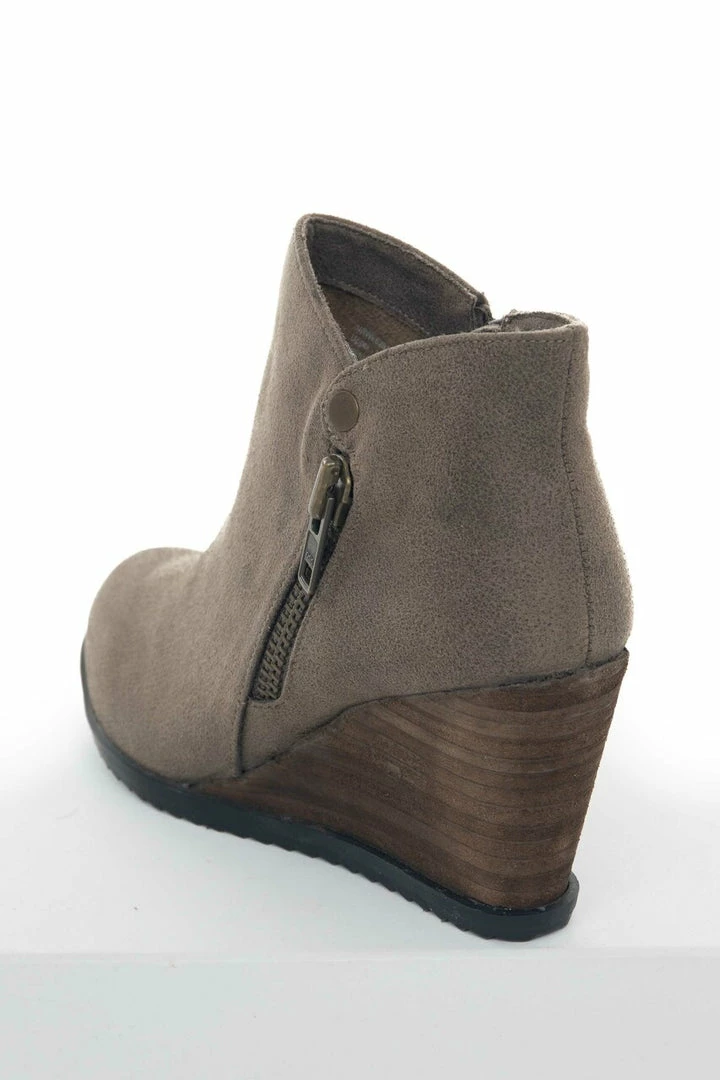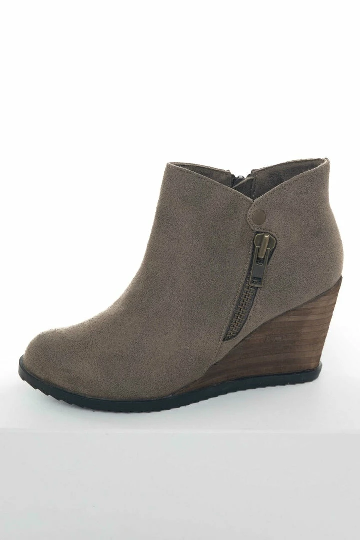 - Taupe Wedge Heel Booties with Zipper Detail