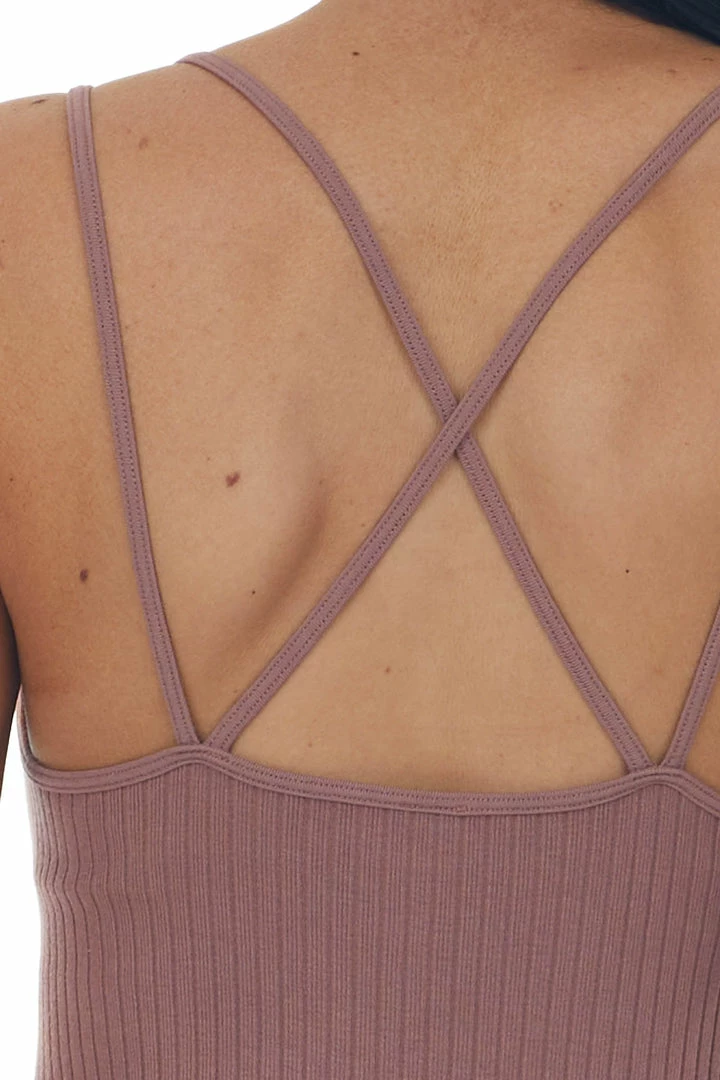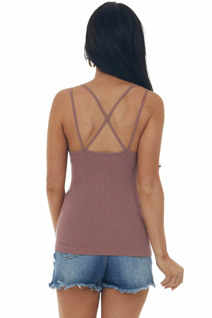 - Dusty Rose Seamless Ribbed Double Strap Cami Top