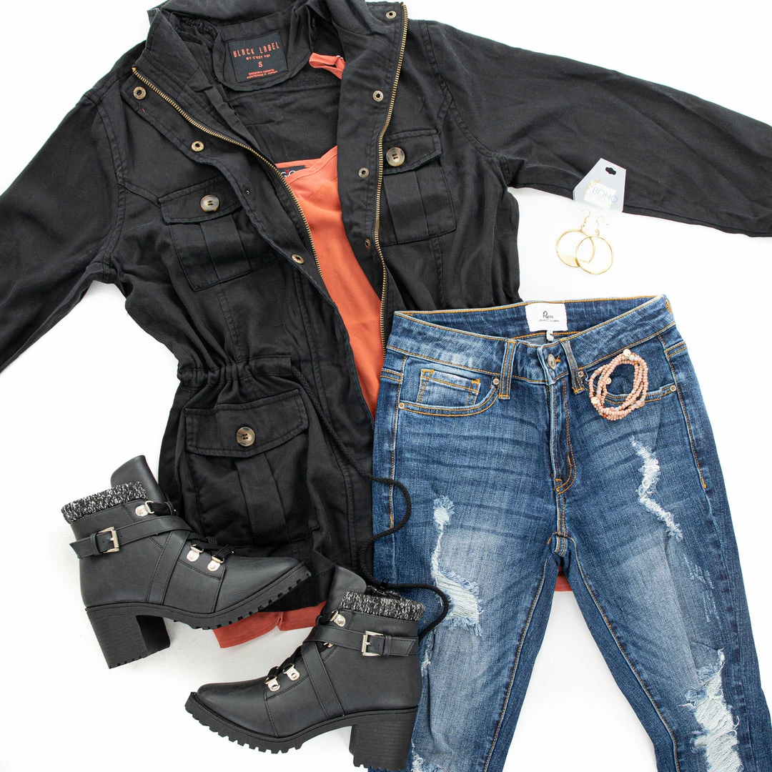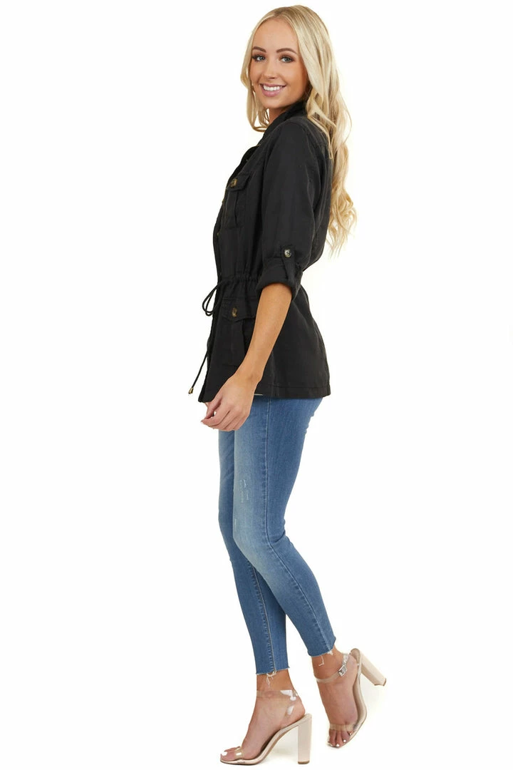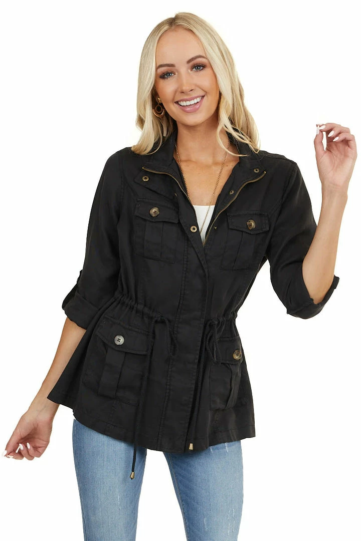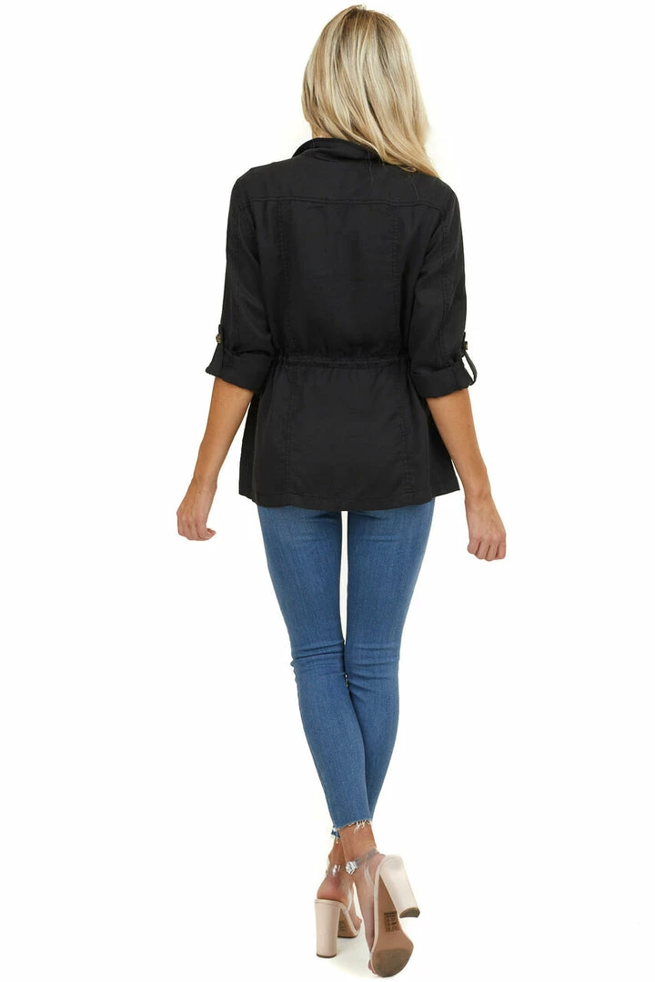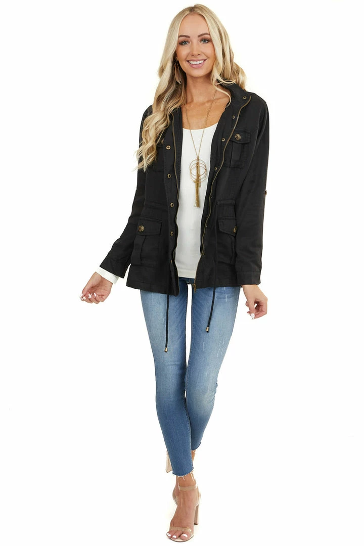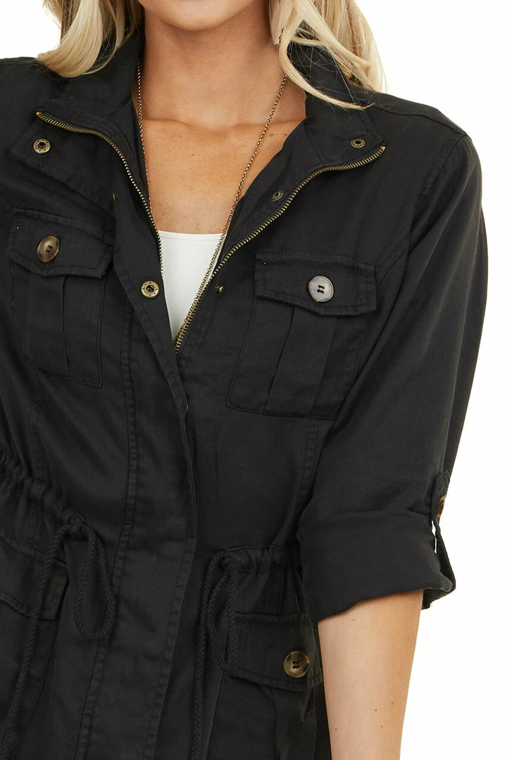 - Black Long Sleeve Utility Anorak Jacket with Front Pocket Details