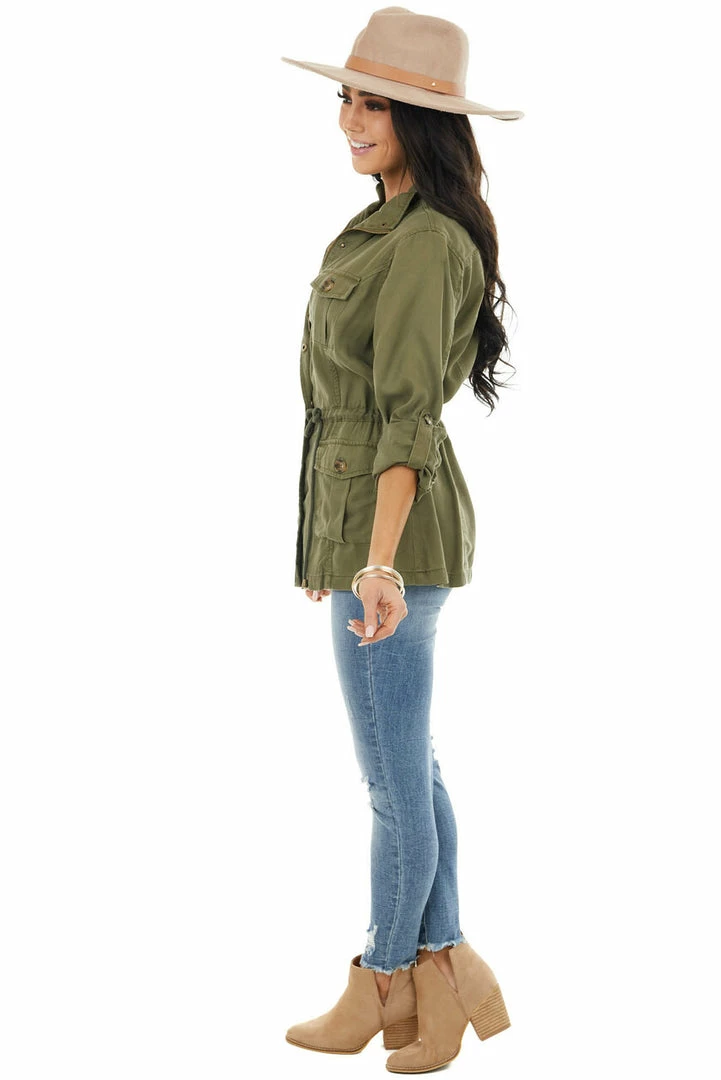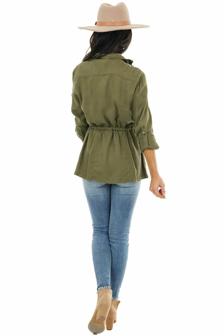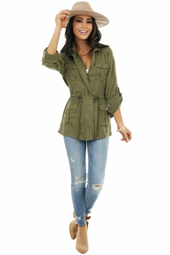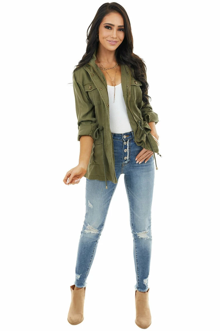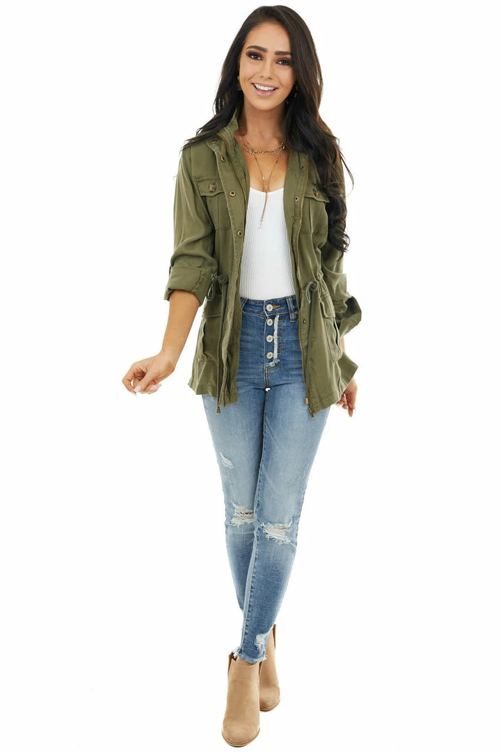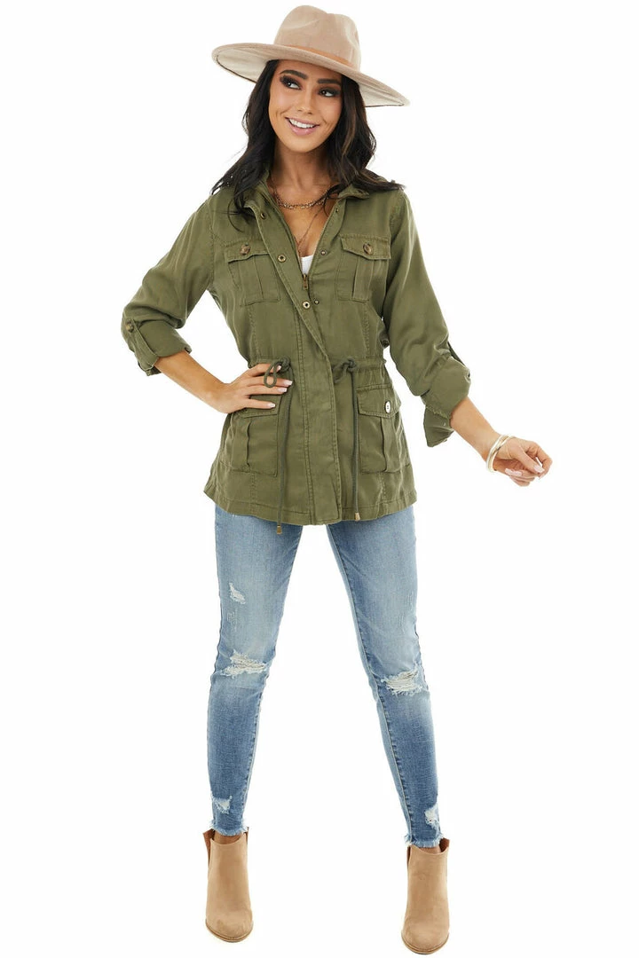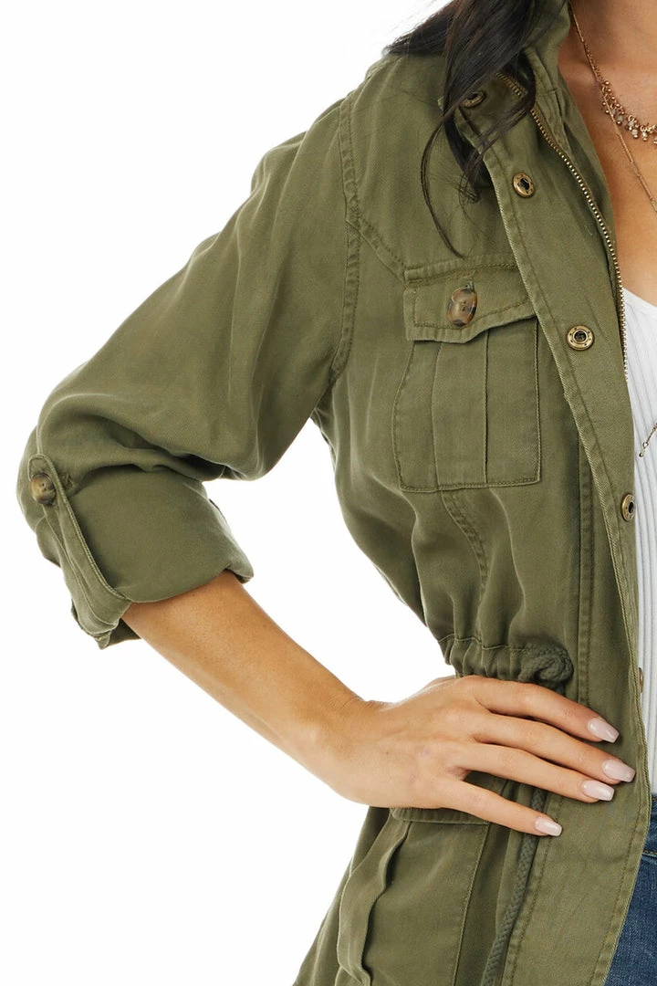 - Olive Long Sleeve Anorak Jacket with Front Pocket Details