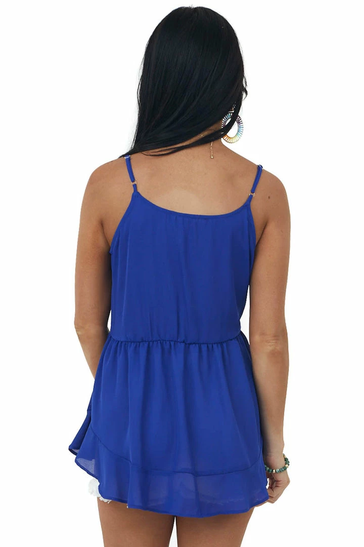- Royal Blue Ruffle Hem Flowy Babydoll Tank Top