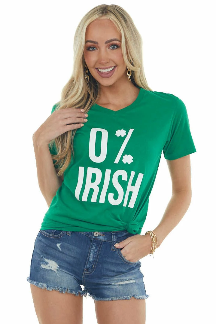 - Kelly Green ‘0% Irish’ V Neck Short Sleeve Top