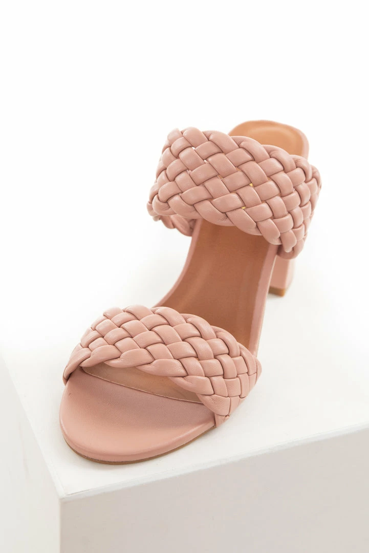 - Rose Taupe Open Toe Strappy Heel with Woven Details