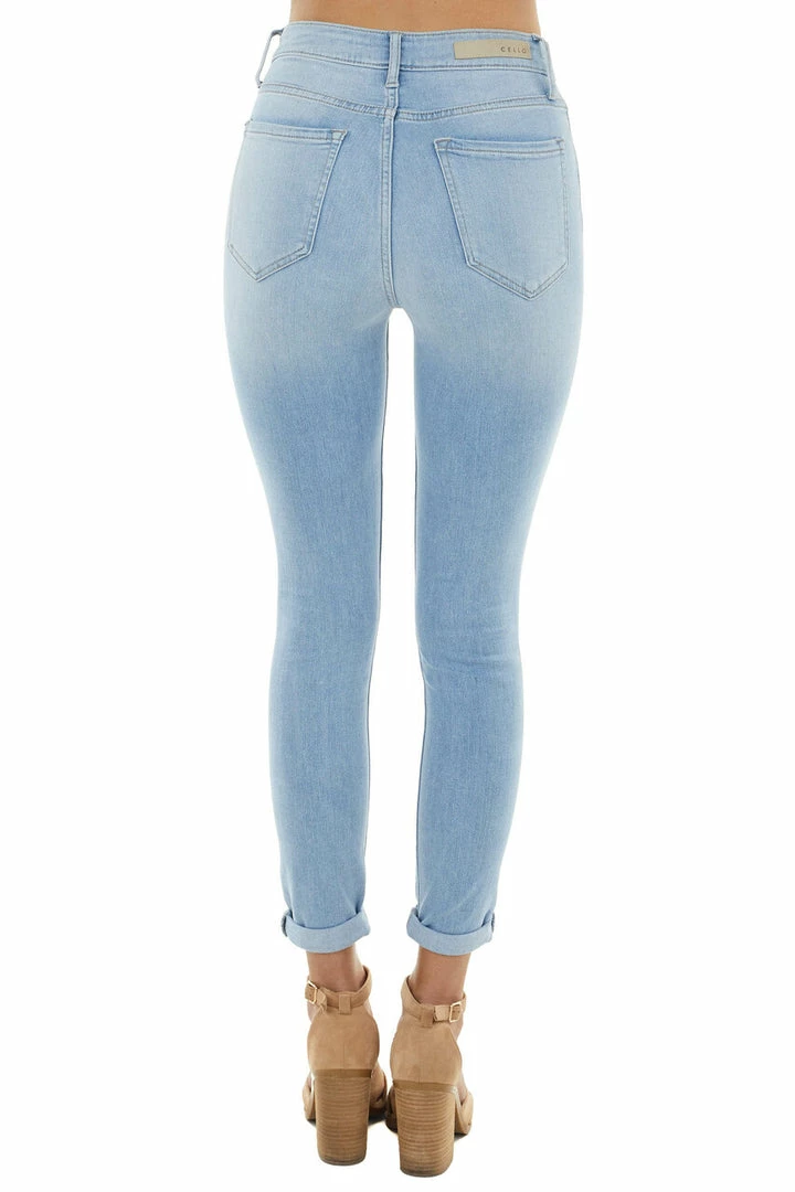 - Light Wash Denim Mid Rise Jeans with Rolled Cuffs