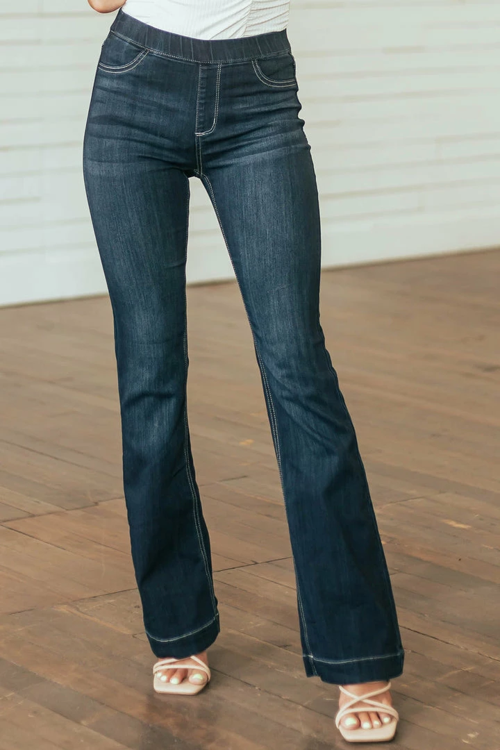 - Dark Wash Stretchy High Rise Flare Jeggings
