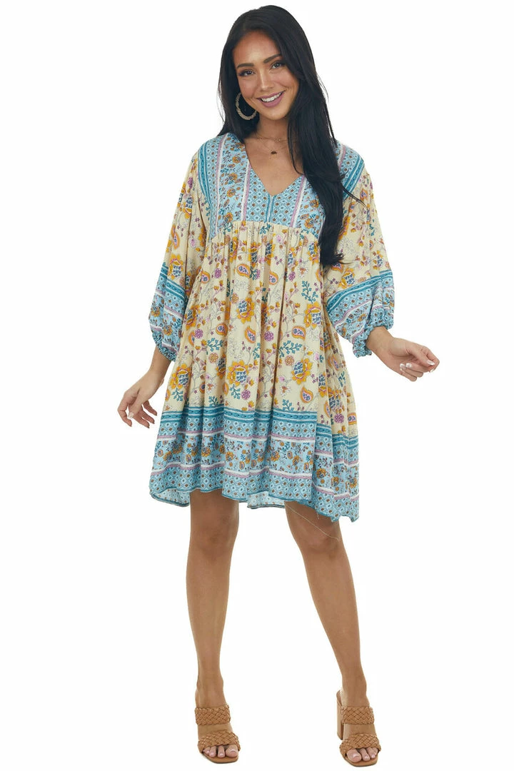 - Buttercream Printed Puff Sleeve Babydoll Dress