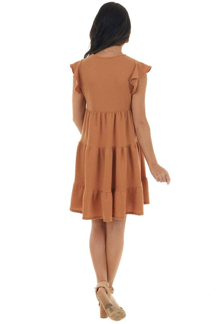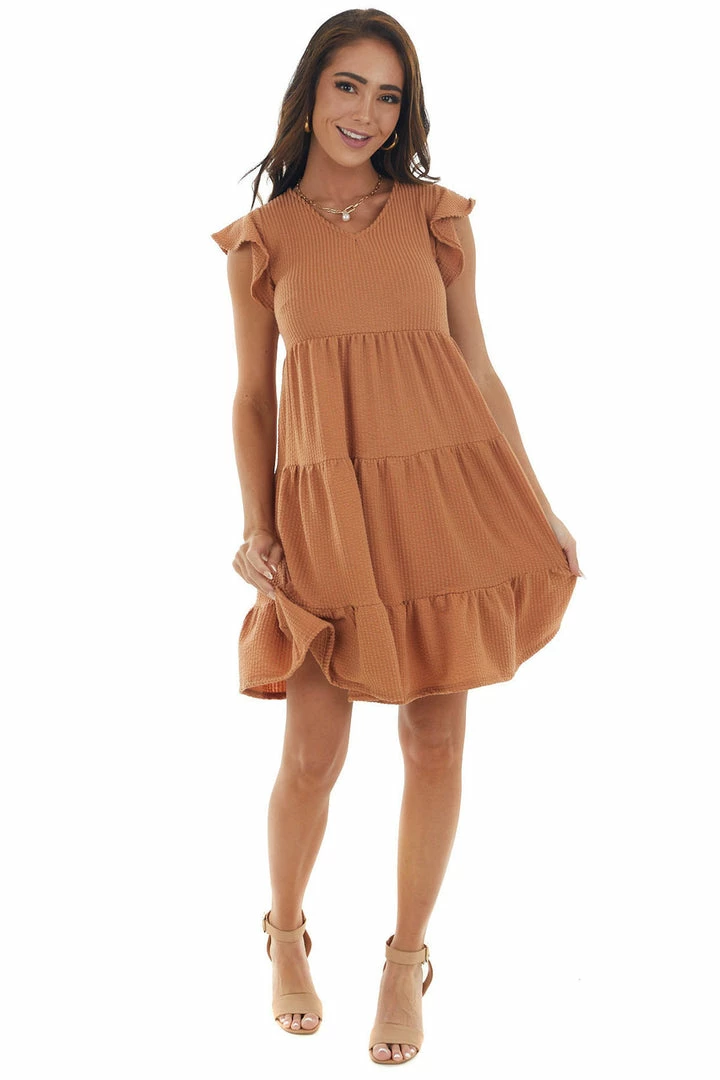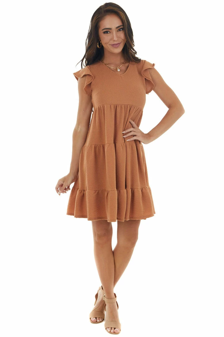 - Cinnamon Ribbed Knit Tiered Short Dress