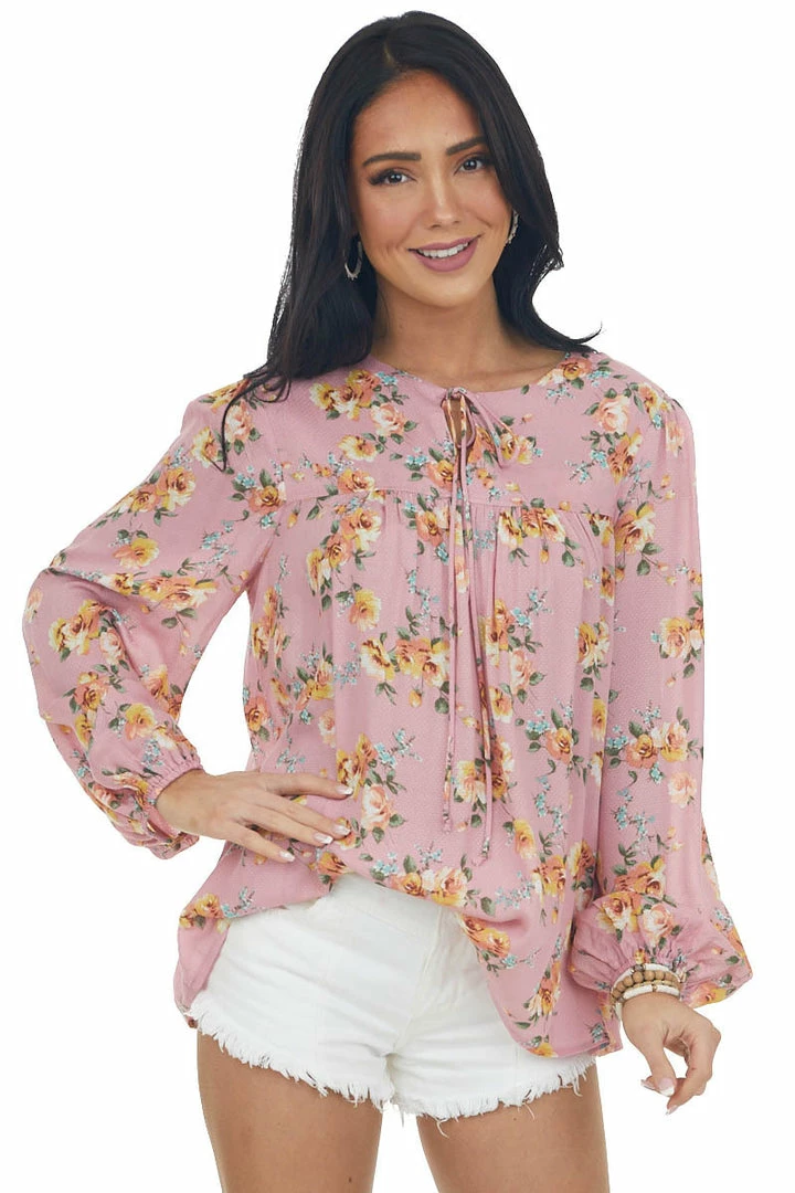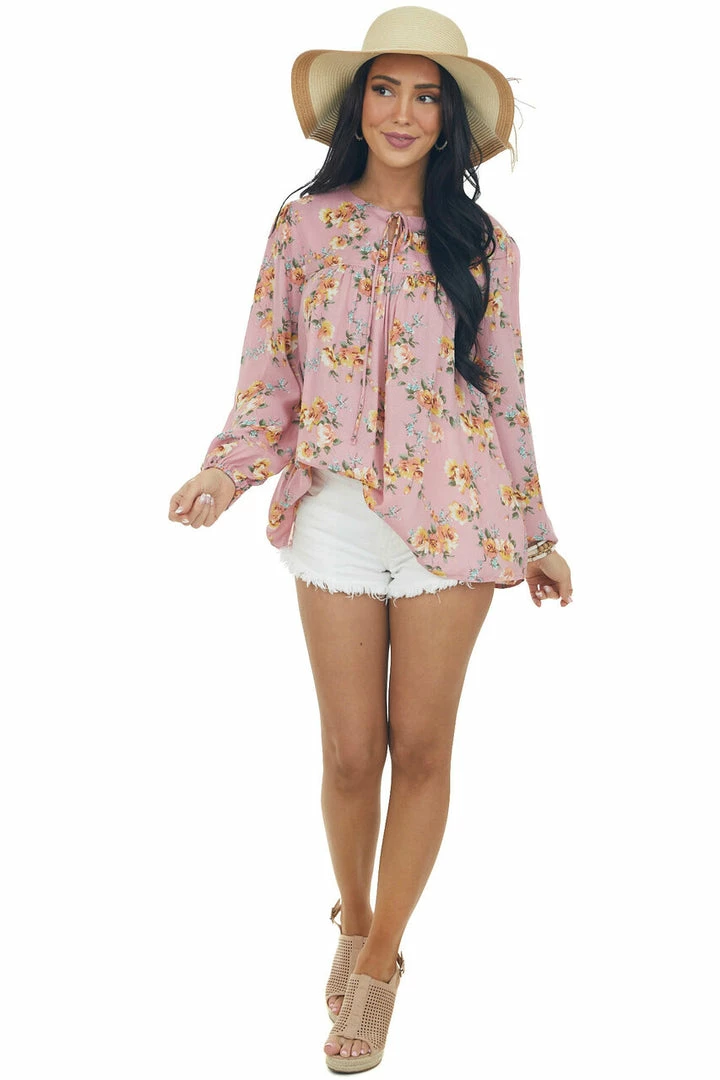 - Dusty Punch Floral Notch Neck Swing Blouse