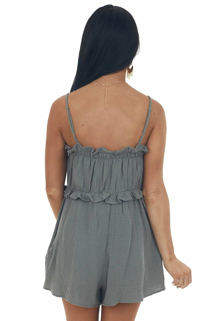 - Faded Olive Sleeveless Gauze Woven Frill Romper