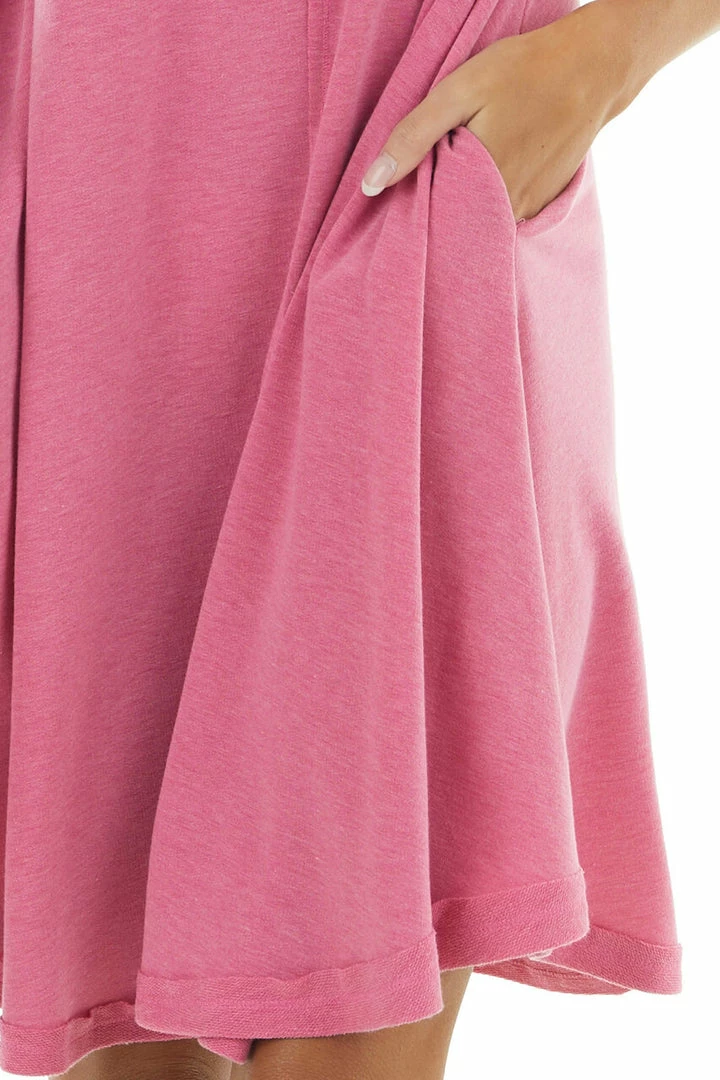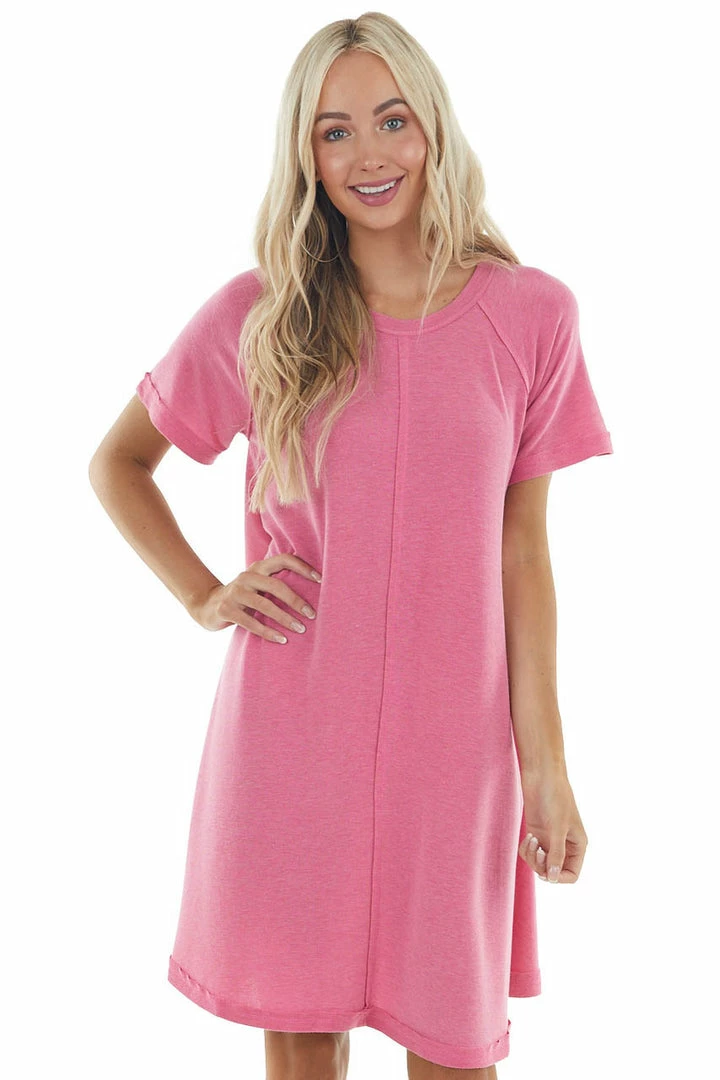 - Heathered Hibiscus Short Swing Dress with Raw Edge Details