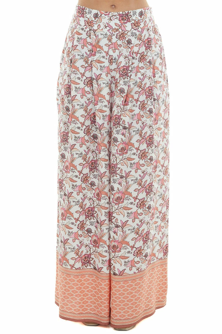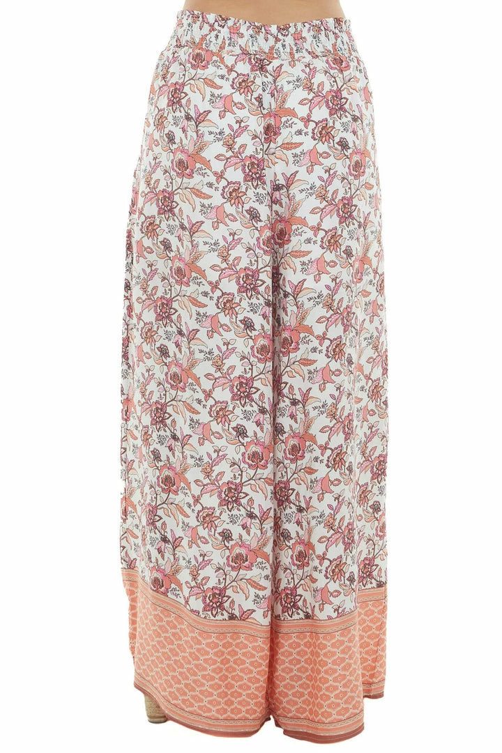 - Ivory Floral Smocked Waist Flowy Leg Pants