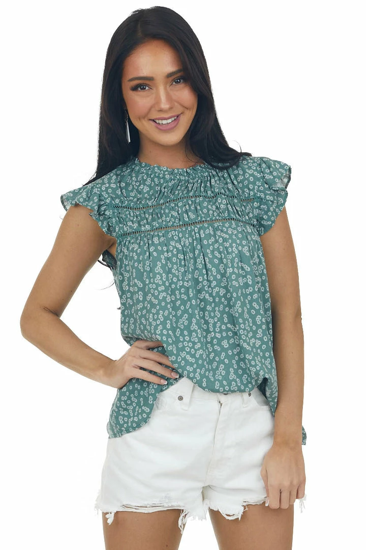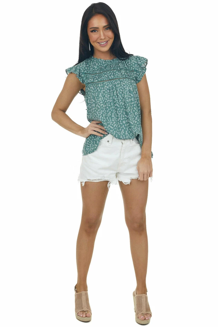 - Juniper Ditsy Floral Top with Flutter Sleeves