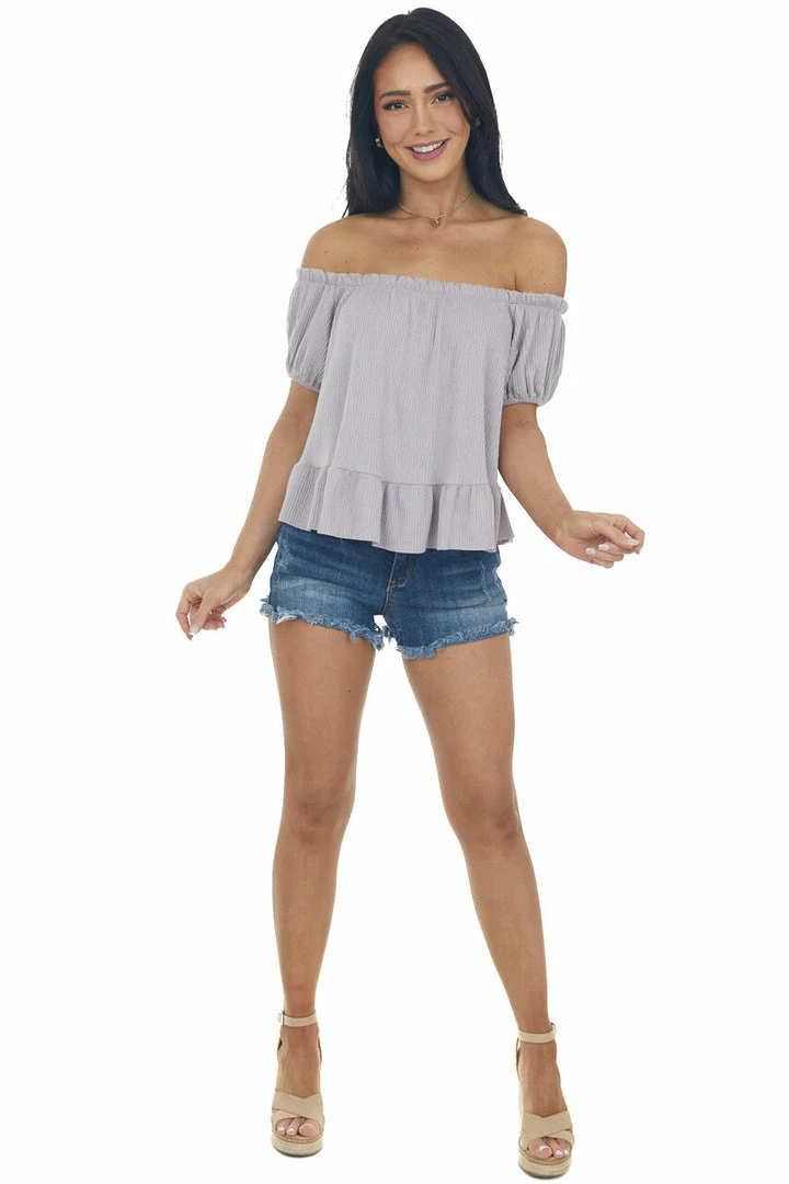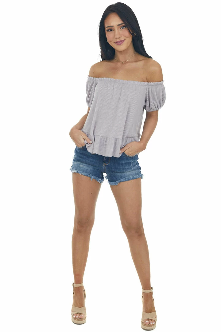 - Lavender Boat Neckline Ribbed Knit Crop Top with Ruffles