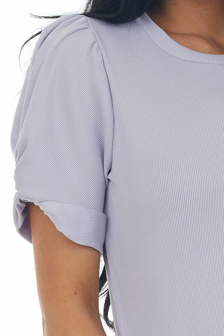 - Lavender Twist Puff Sleeve Ribbed Knit Top